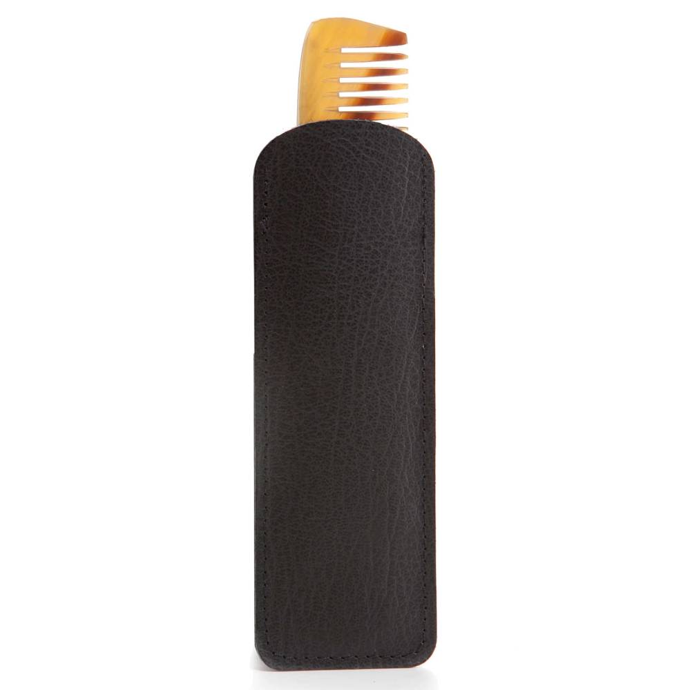 Карманная расчёска Abbeyhorn с двумя типами зубцов. Модель выполнена из цельного куска обработанного бычьего рога бежевого оттенка. Аксессуар представлен в комплекте с чехлом из натуральной кожи.