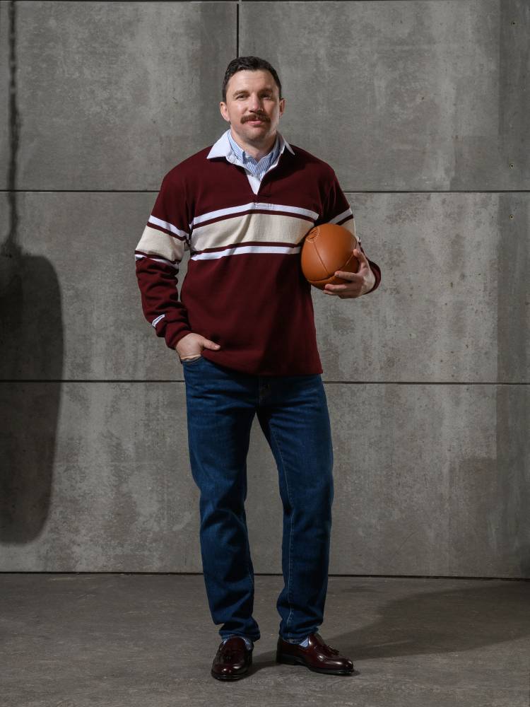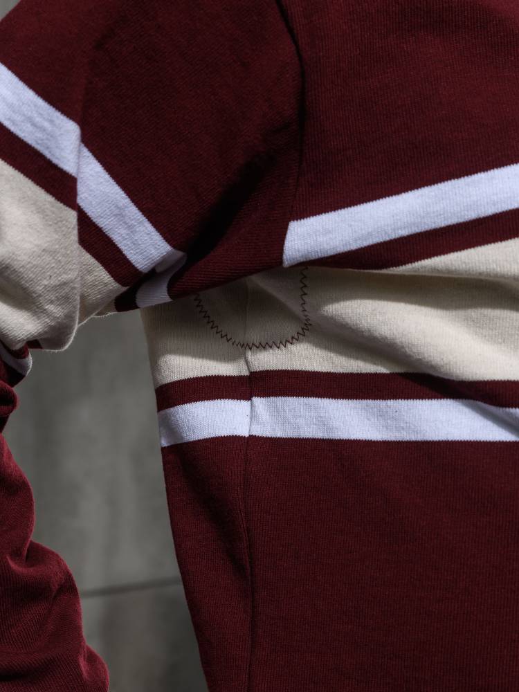 Лимитированная регбийка канадского бренда Barbarian, созданная по специальному дизайну в честь 15-летнего юбилея Checkroom. Модель Acadia выделяется особым дизайном: сочетание широкой и двух узких полос на груди в духе традиционного университетского джерси (Collegiate).