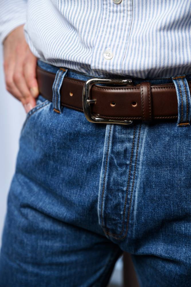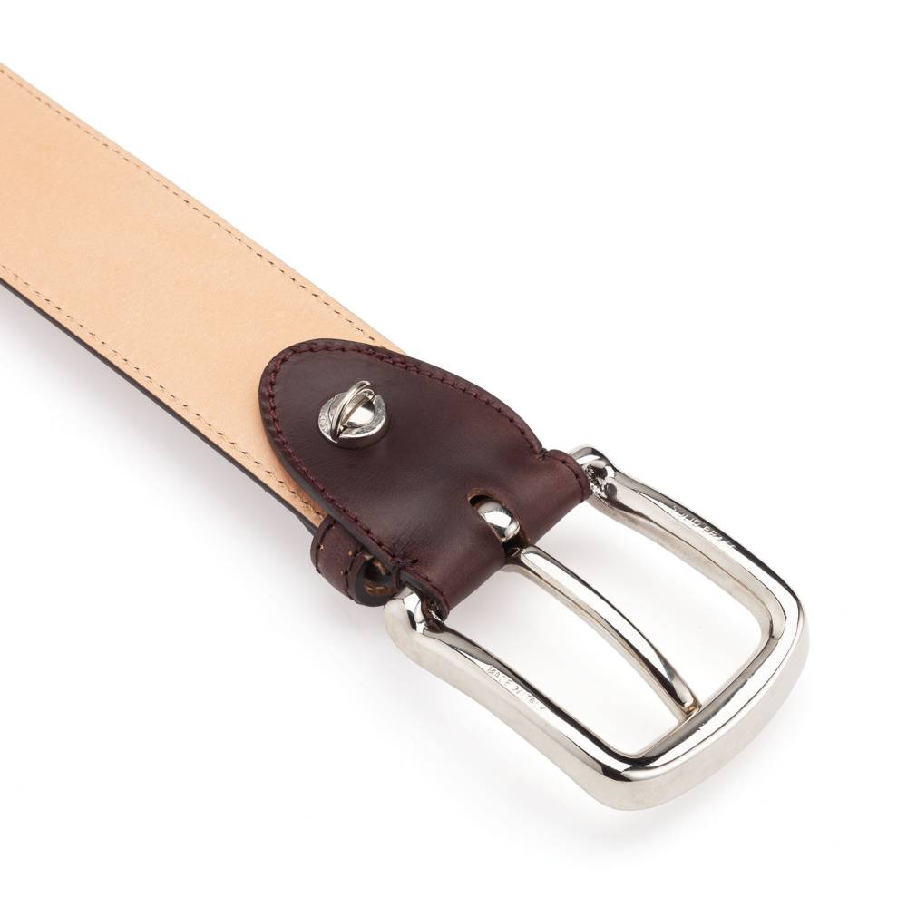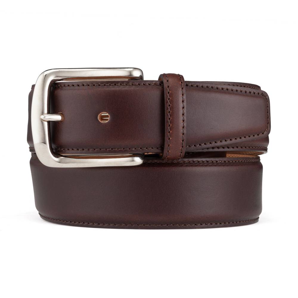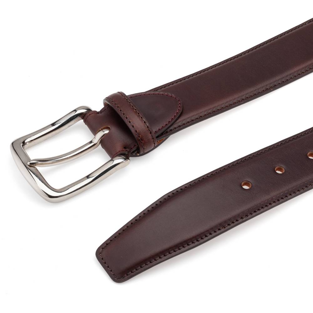 Повседневный мужской ремень коричневого цвета Artisan шириной 4 см для джинсов и неформальных брюк. Выполнен из плотной жированной телячьей кожи Chromexcel® чикагской дубильни Horween Leather Co. Внутренняя часть из тонкой кожи растительного дубления. Модель имеет массивную выгнутую пряжку с округлыми краями из никелированной латуни. Ремень сделан на небольшом семейном предприятии в Тоскане, знаменитом кожевенном регионе Италии.