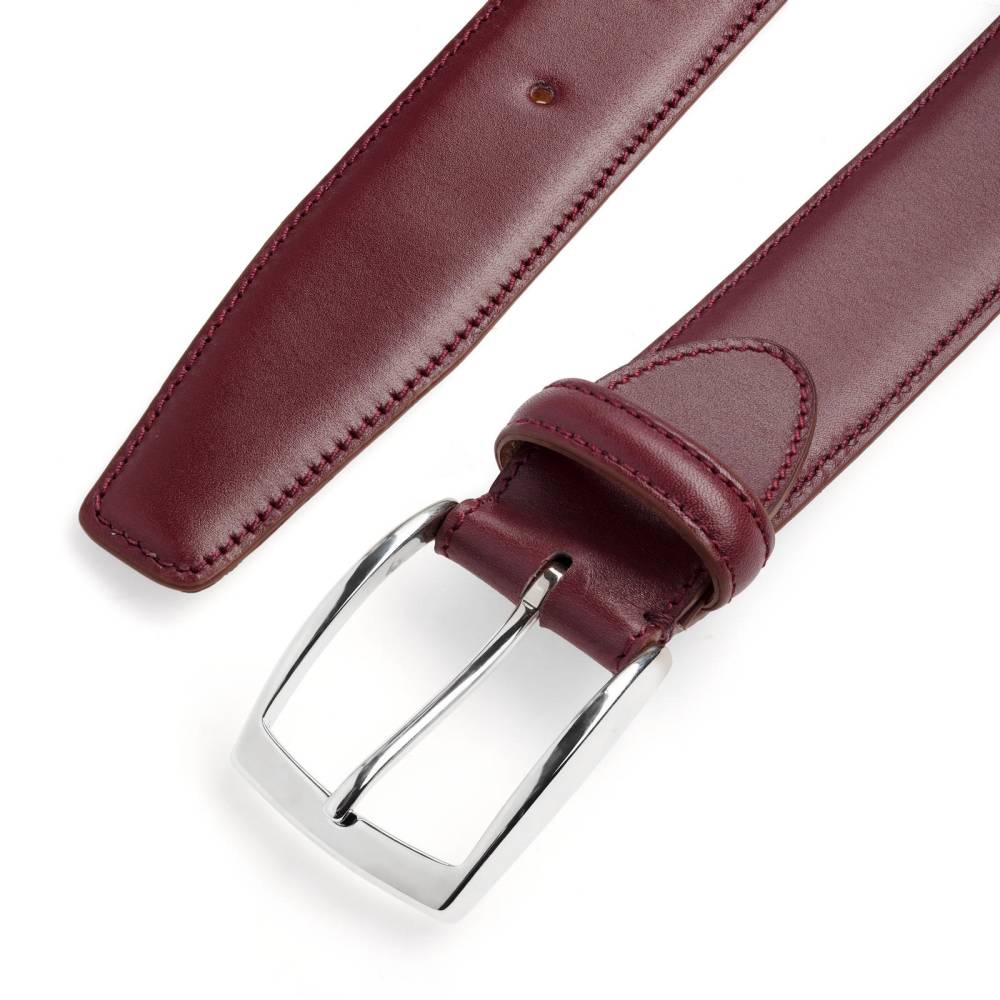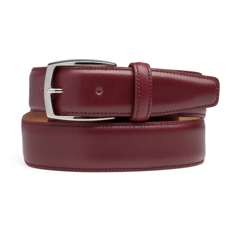 Классический мужской ремень Artisan из гладкой бордовый телячьей кожи. Внутренняя часть из тонкой кожи растительного дубления. Модель имеет традиционную прямоугольную пряжку из никелированной латуни. Ремень сделан на небольшом семейном предприятии в Тоскане, знаменитом кожевенном регионе Италии.