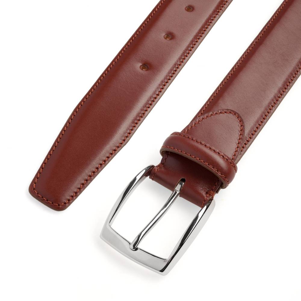 Классический мужской ремень Artisan из гладкой коричневой телячьей кожи. Внутренняя часть из тонкой кожи растительного дубления. Модель имеет традиционную прямоугольную пряжку из никелированной латуни. Ремень сделан на небольшом семейном предприятии в Тоскане, знаменитом кожевенном регионе Италии.