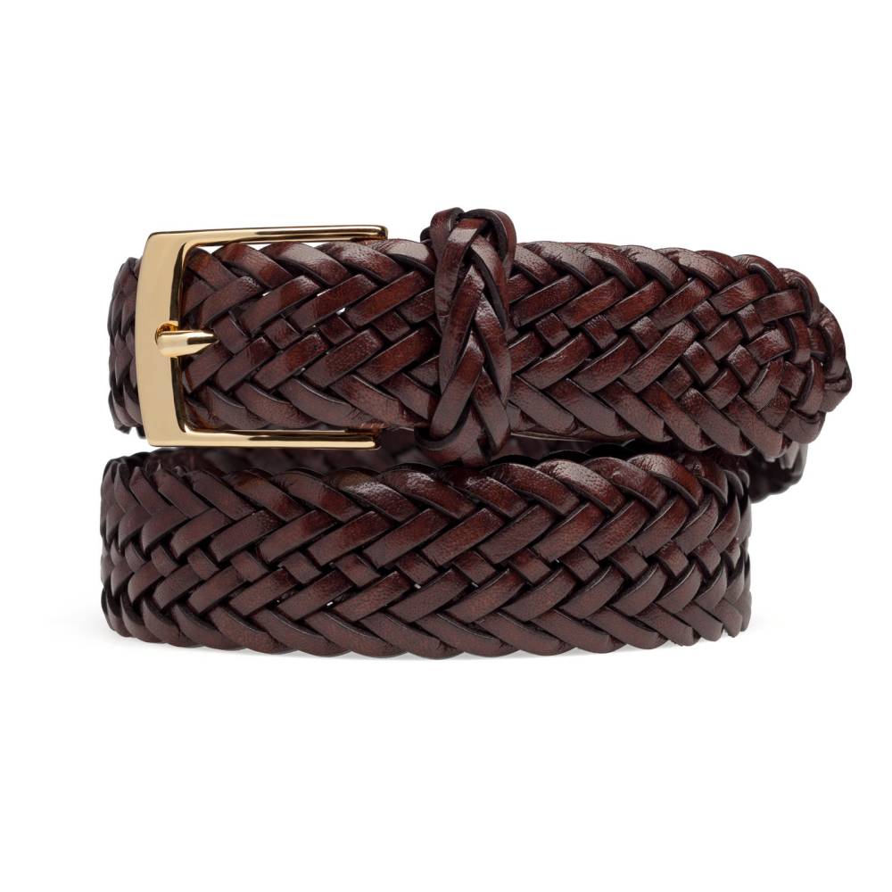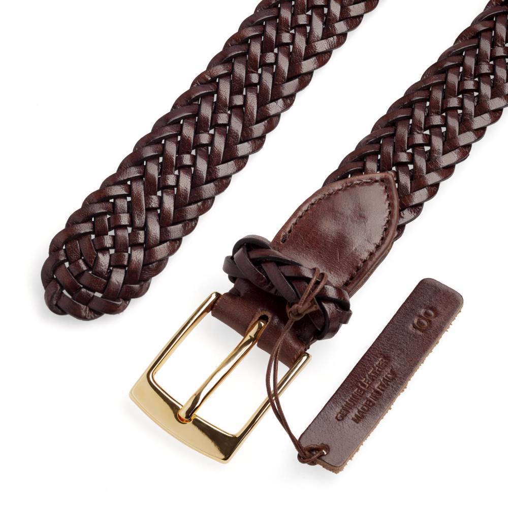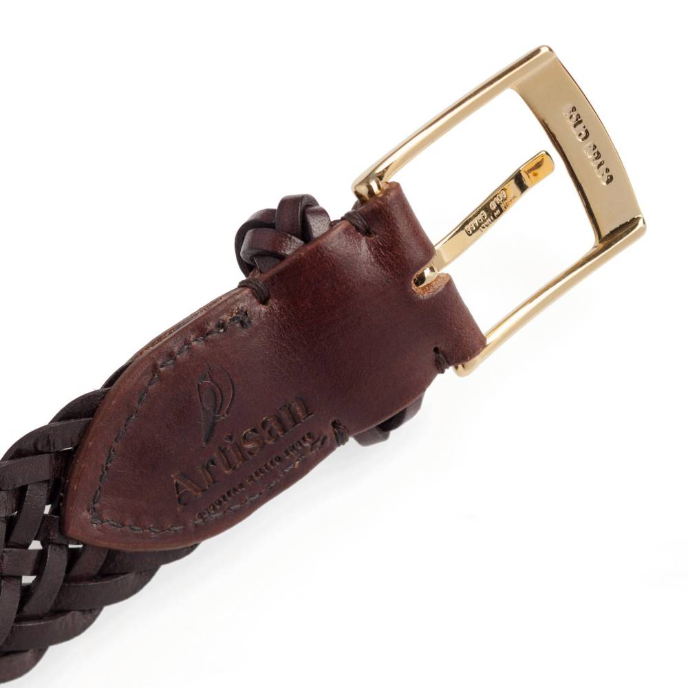 Классический мужской плетёный ремень испанского бренда Artisan из тёмно-коричневой телячьей кожи растительного дубления. Модель имеет элегантную латунную пряжку. Ремень великолепно смотрится с фактурными летними, демисезонными и зимними вещами: отличным сочетанием будут фланель, вельвет, твид, плотный деним, лён или хлопок.