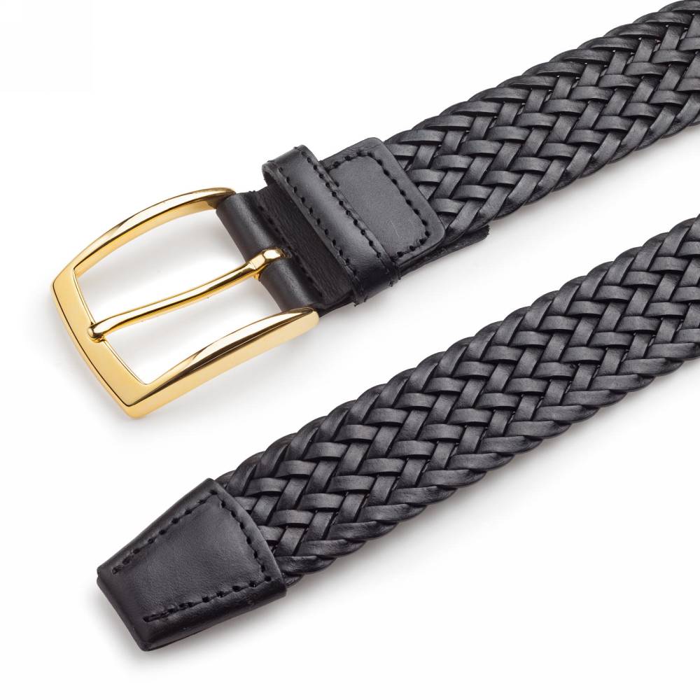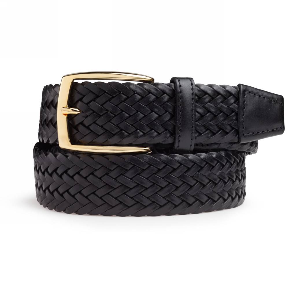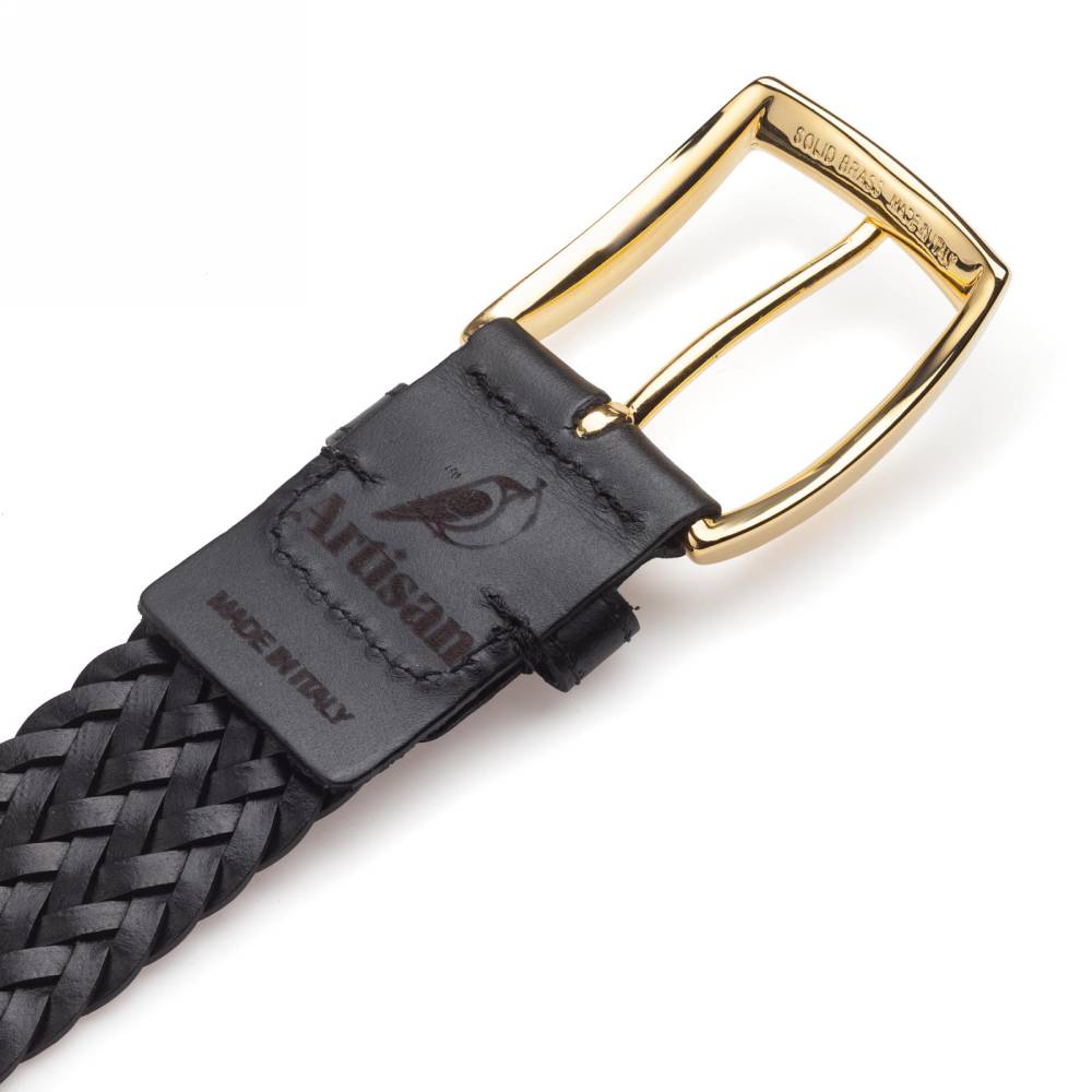 Классический мужской плетёный ремень испанского бренда Artisan из чёрной телячьей кожи растительного дубления. Модель имеет элегантную латунную пряжку с позолотой. Ремень великолепно смотрится с фактурными летними, демисезонными и зимними вещами: отличным сочетанием будут фланель, вельвет, твид, плотный деним, лён или хлопок.