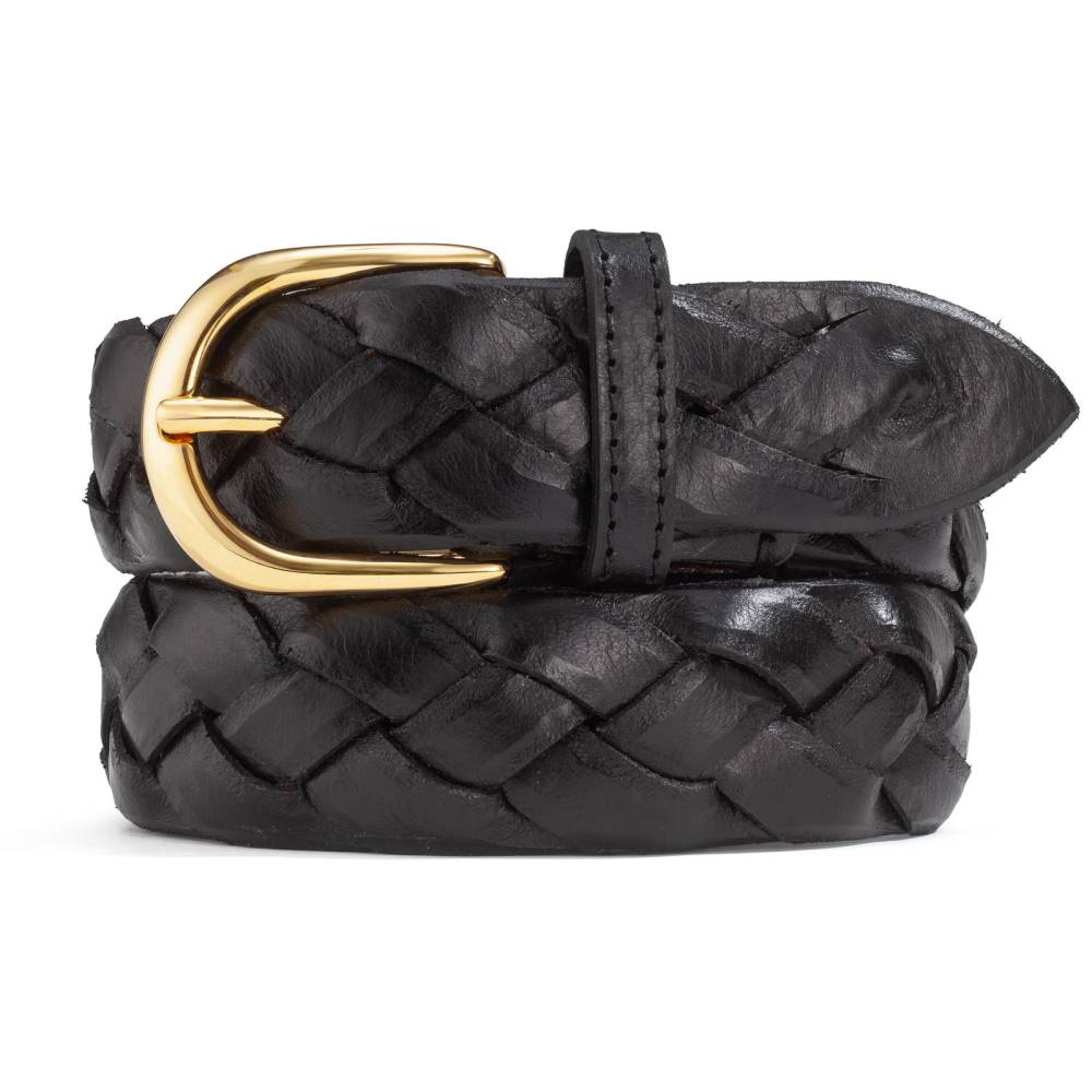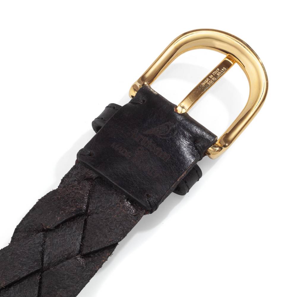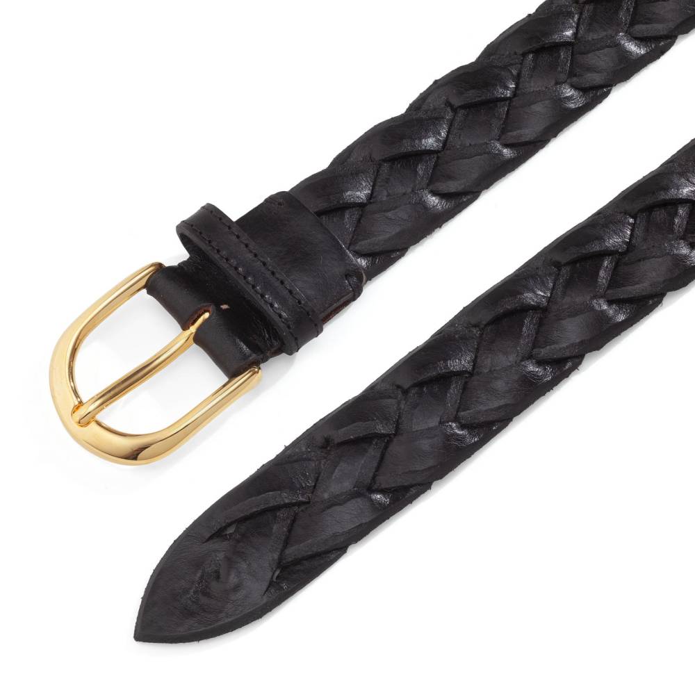 Классический мужской плетёный ремень Artisan из плотной телячьей кожи чёрного цвета. Модель оснащена округлой пряжкой из цельной латуни, покрытой напылением из золота 18к. Особенностью модели является ручное плетение, которое начинается от острого конца ремня. Ремень великолепно смотрится с фактурными летними, демисезонными и зимними вещами: отличным сочетанием будут фланель, вельвет, твид, плотный деним, лён или хлопок.