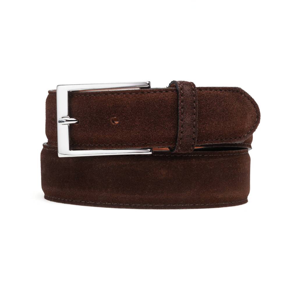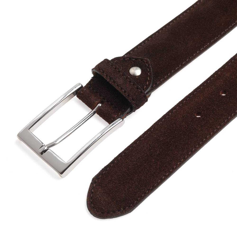 Классический мужской ремень испанского бренда Berwick из приятной на ощупь промасленной замши коричневого цвета. Модель имеет традиционную прямоугольную пряжку из никелированной латуни. К ремню прилагается фирменная коробка.