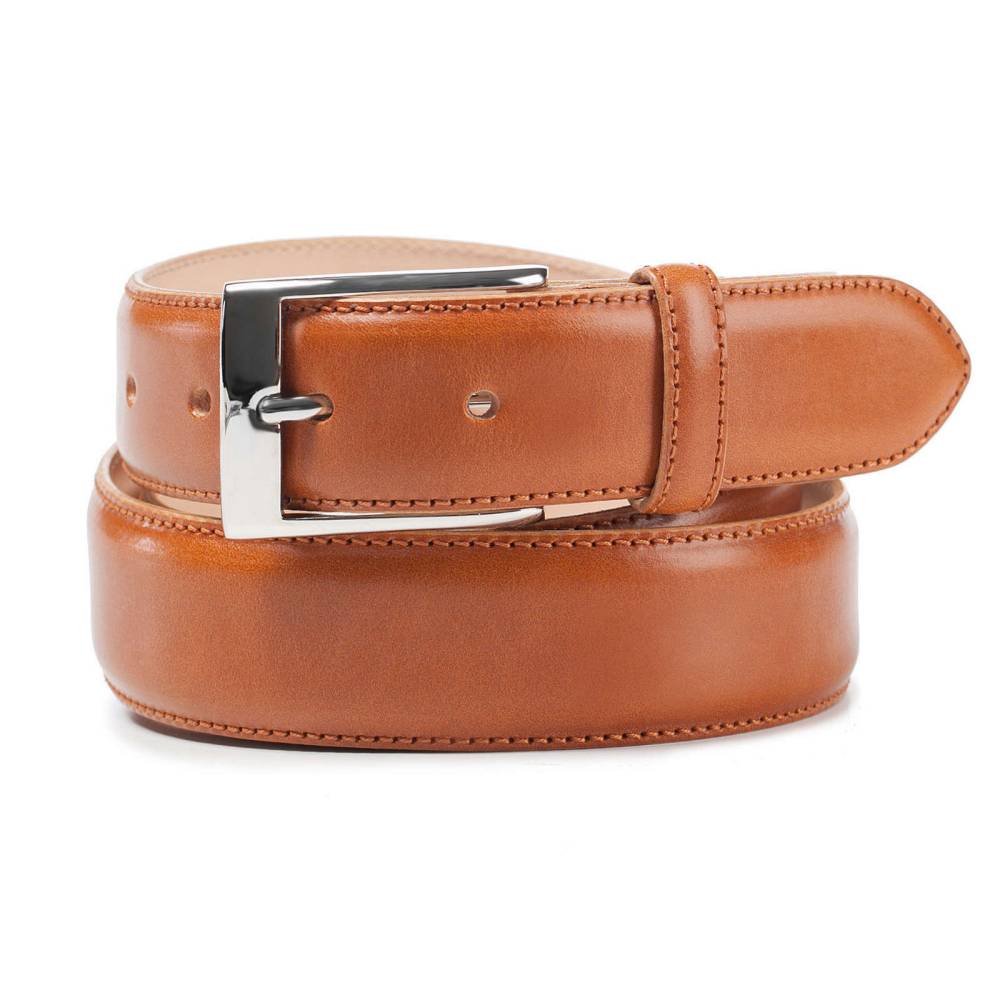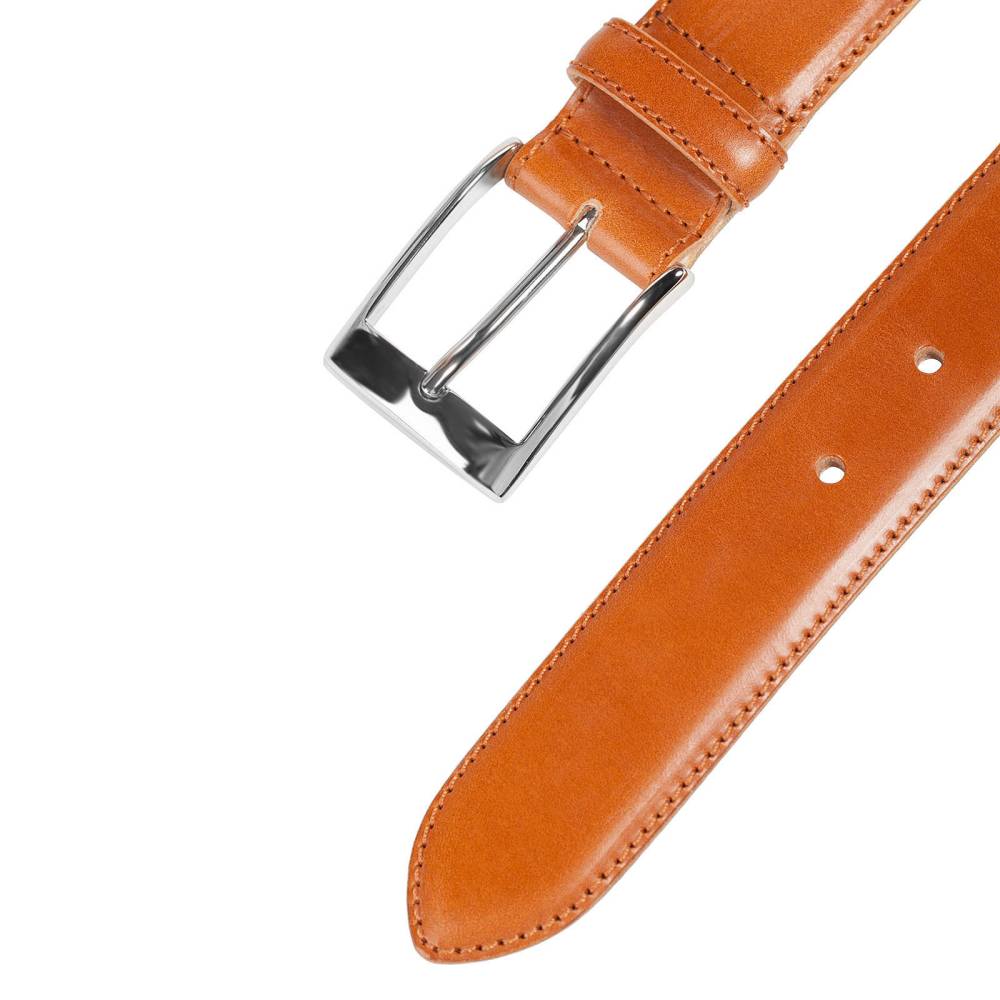 Классический мужской ремень немецкой фирмы Kreis Ledermanufaktur выполнен вручную из высококачественной седельной кожи руками первоклассных кожевенных мастеров. Для этой модели была выбрана плотная кожа, но в то же время обладающая гибкостью и эластичностью. Полотно ремня вручную окрашено в коньячный цвет. Пряжка выполнена из никелированной латуни.