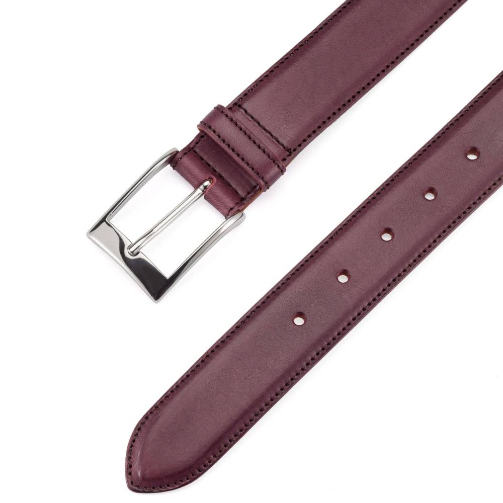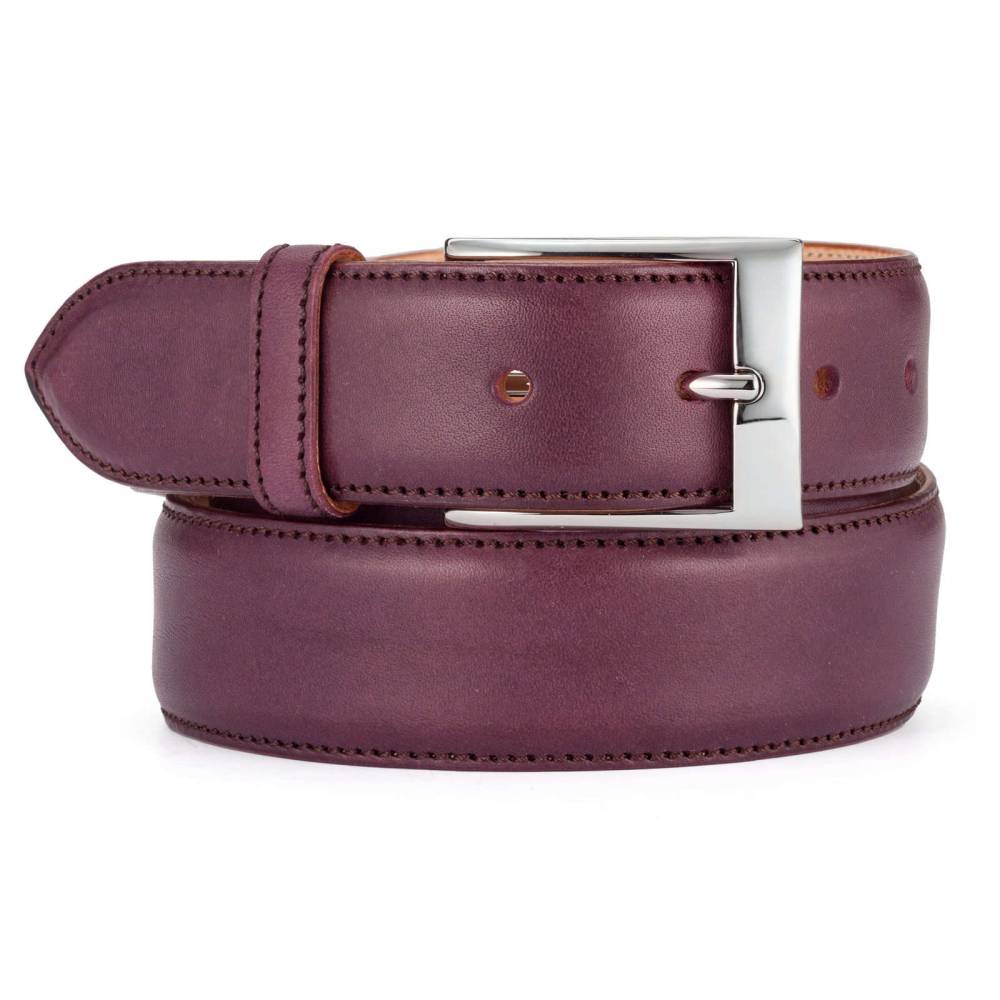 Классический мужской ремень немецкой фирмы Kreis Ledermanufaktur выполнен вручную из высококачественной седельной кожи руками первоклассных кожевенных мастеров. Для этой модели была выбрана плотная кожа, но в то же время обладающая гибкостью и эластичностью. Полотно ремня вручную окрашено в фиолетовый цвет. Пряжка выполнена из никелированной латуни.