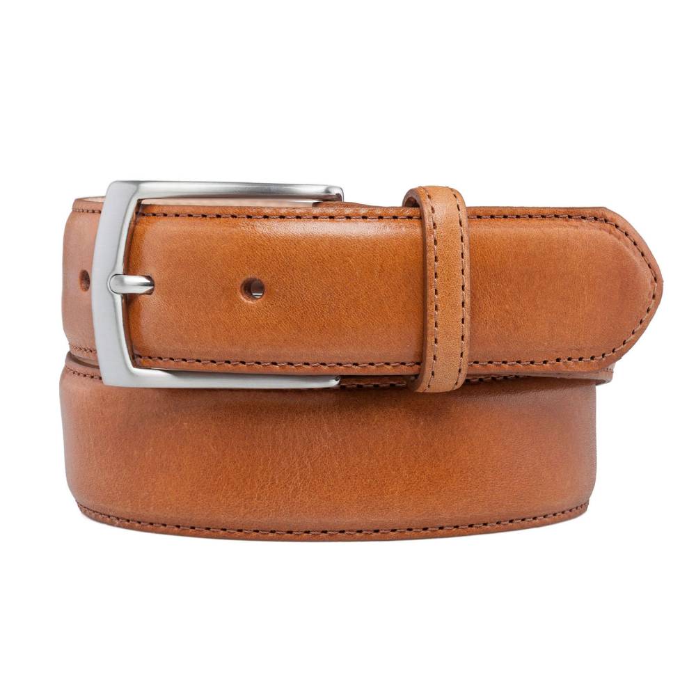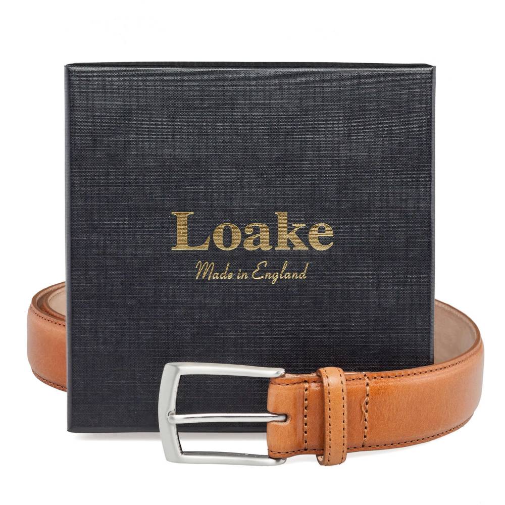Классический мужской ремень Loake Henry выполнен из плотной телячьей кожи светло-коричневого цвета. Модель имеет традиционную прямоугольную пряжку из стали с матовой поверхностью серебристого цвета. К ремню прилагается фирменная подарочная коробка из плотного картона.