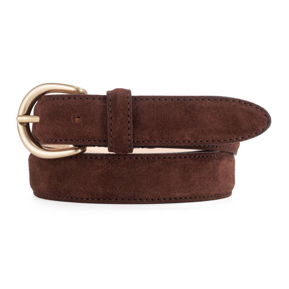 Изготовлен из натуральной замши тёмно-коричневого цвета на небольшом семейном предприятии в Тоскане — регионе, знаменитом своими вековыми кожевенными традициями. Внутренняя часть аксессуара выполнена из тонкой кожи растительного дубления, что обеспечивает исключительную прочность и комфорт при носке. Модель дополнена традиционной округлой пряжкой из цельной латуни без покрытия, что придает изделию благородный состаренный эффект.