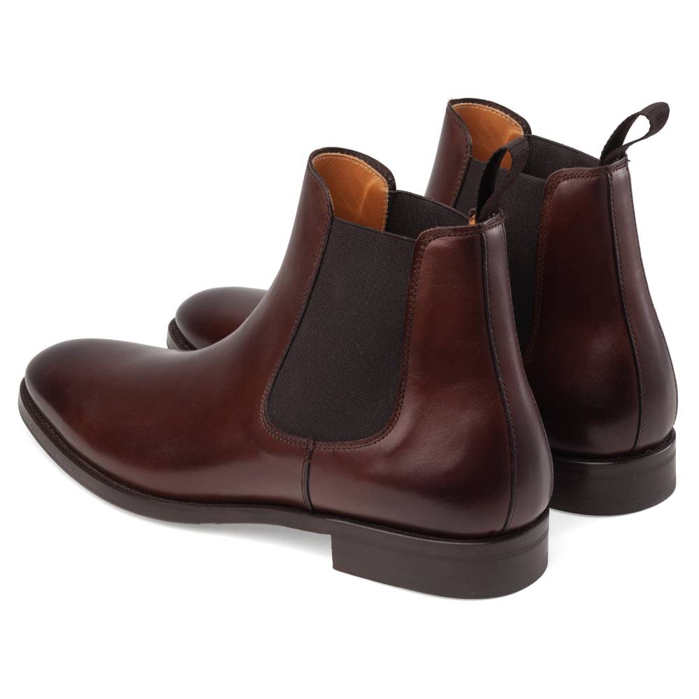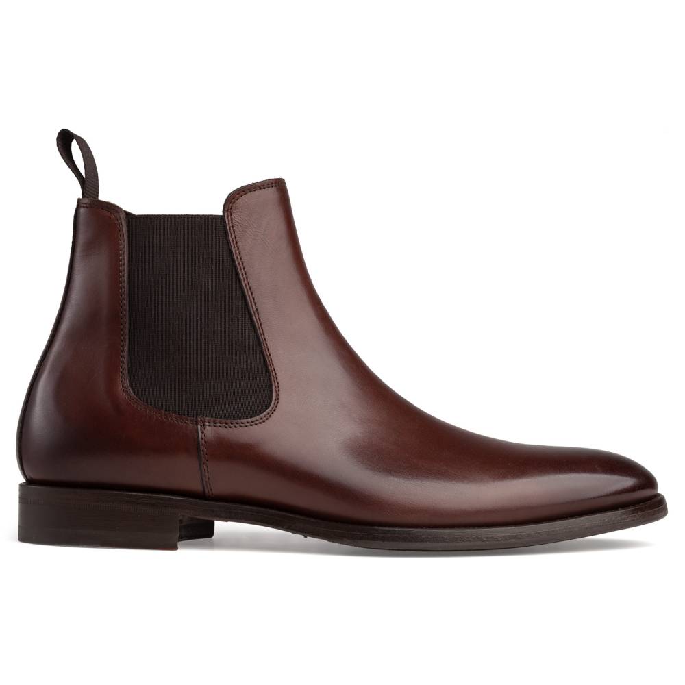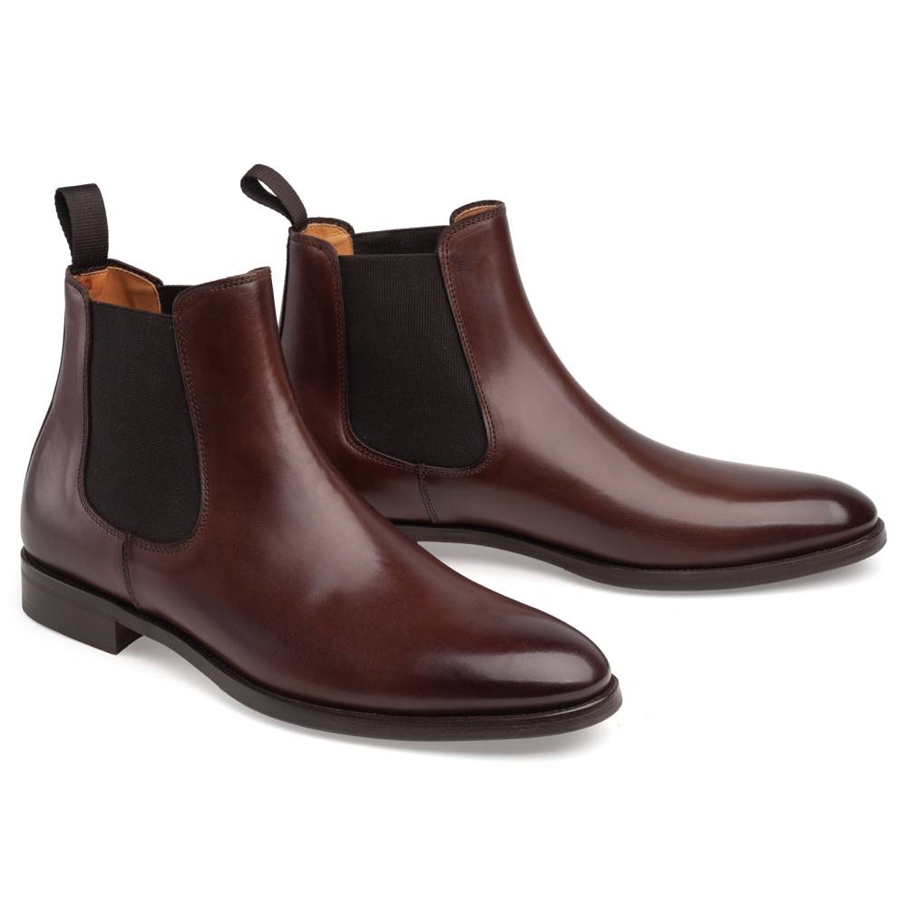 Тёмно-коричневые сапоги челси Artisan на лёгкой и гибкой комбинированной подошве. Верх выполнен из гладкой телячьей кожи. Внутренняя отделка из тонкой кожи горчичного оттенка. Сверху расположена кожаная петля, а по бокам — традиционные эластичные вставки, которые позволяют быстро и легко надевать обувь. Конструкция Blake.