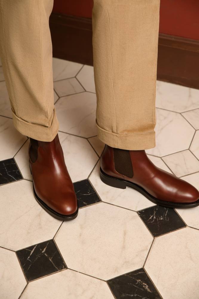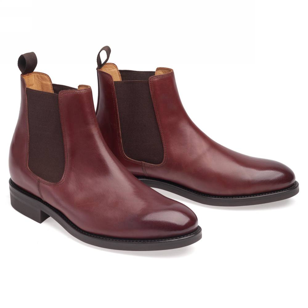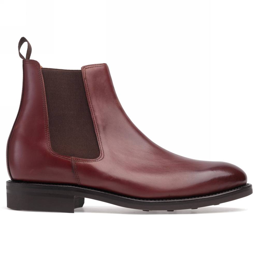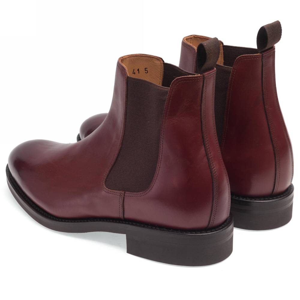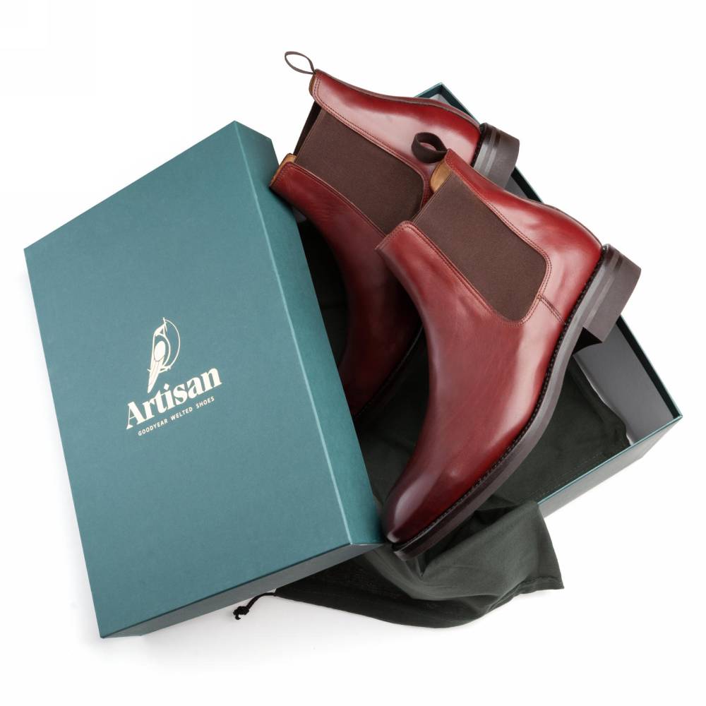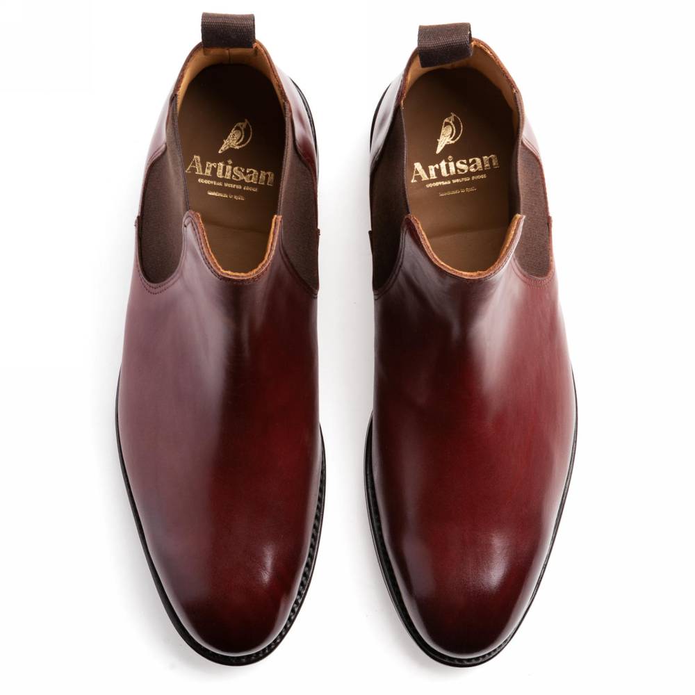 Классические мужские сапоги челси Artisan для повседневного осеннего и зимнего гардероба. Верх модели выполнен из гладкой телячьей кожи бордового цвета от французской дубильни Tanneries D'Annonay. Внутри цельная стелька из тонкой мягкой кожи. По бокам расположены традиционные эластичные вставки, благодаря которым челси быстро и легко надеваются. Конструкция Goodyear Welted.