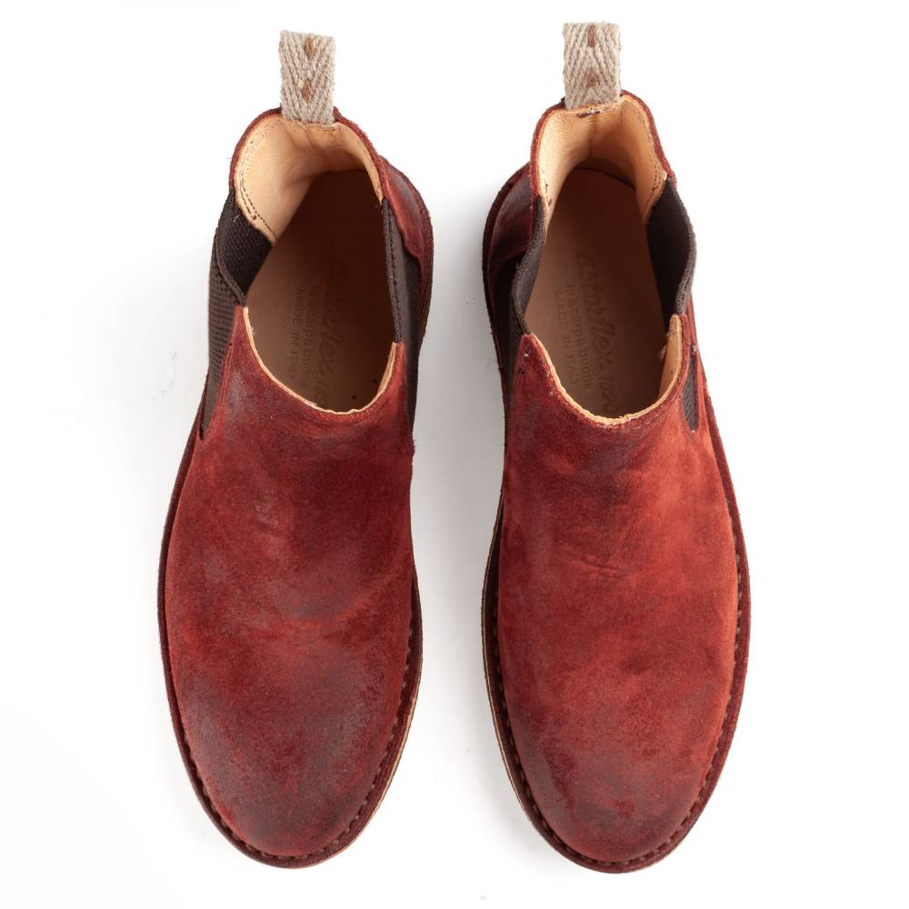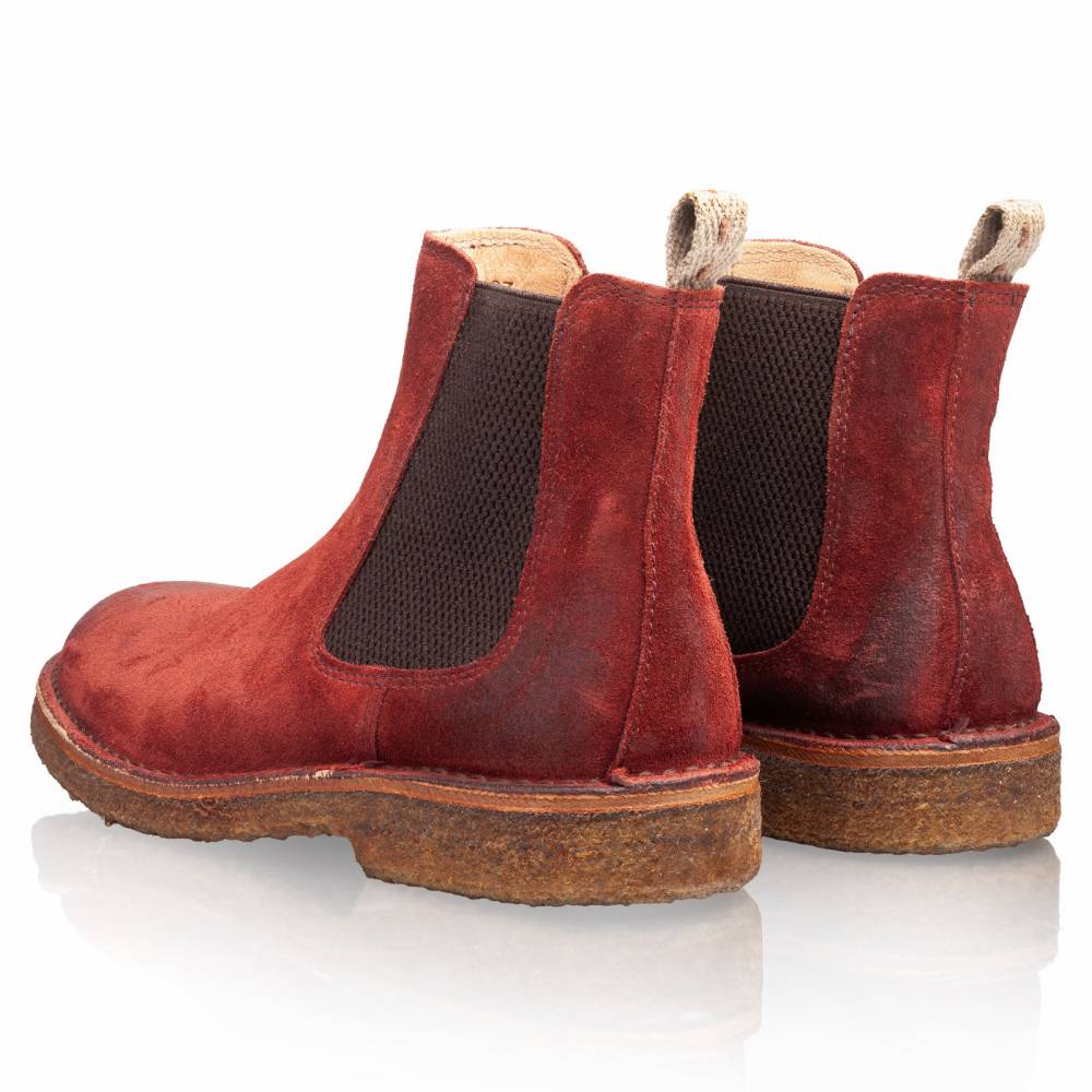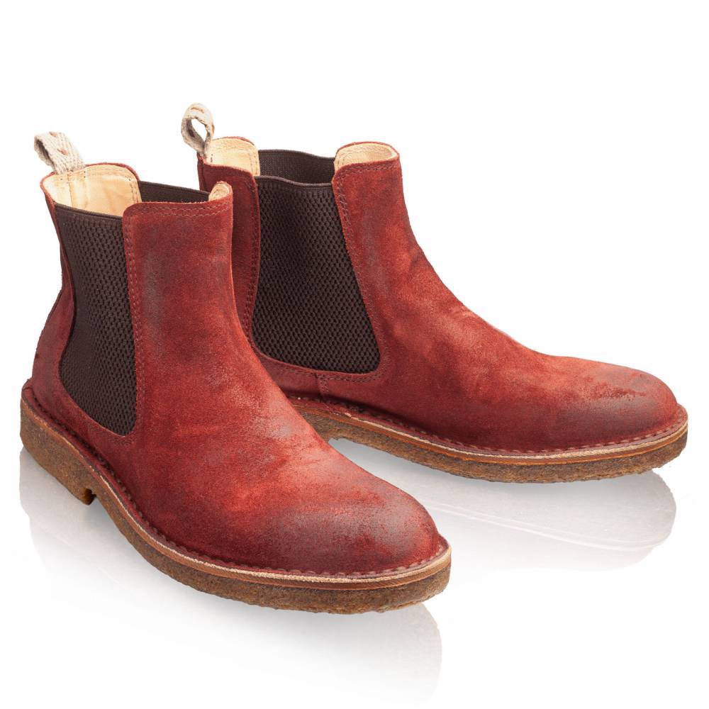 Женская версия флагманской модели бренда Astroflex. Удобные повседневные челси на гибкой подошве из натурального каучука. Верх выполнен из высококачественной тосканской замши красного цвета. Подкладка из гипоаллергенной кожи растительного дубления. Модель имеет мягкую съёмную стельку из кожи и пены с эффектом памяти (memory foam). По бокам расположены традиционные эластичные вставки. Между верхом и подошвой сапоги дополнены промежуточным слоем из плотной кожи, который делает обувь более структурированной и износостойкой.