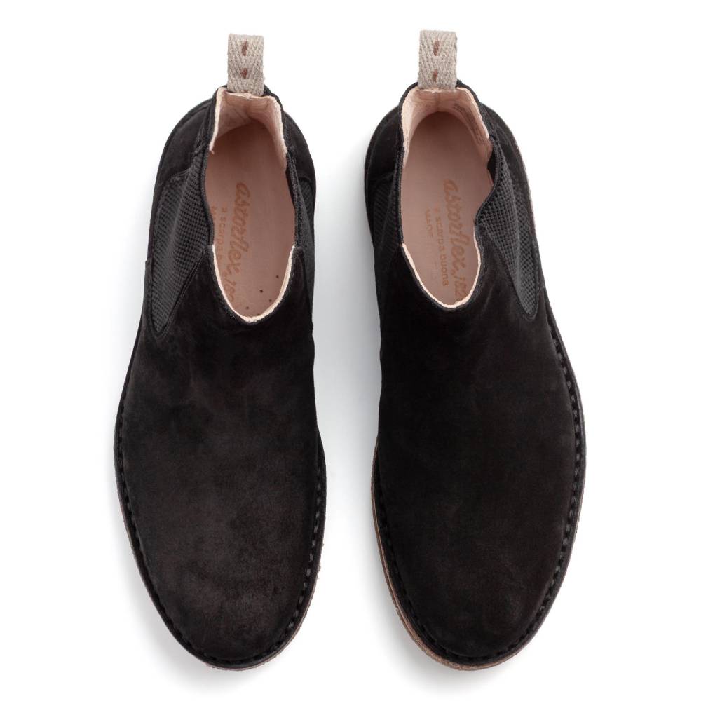Женская версия флагманской модели бренда Astroflex. Удобные повседневные челси на гибкой подошве из натурального каучука. Верх выполнен из высококачественной тосканской замши чёрного цвета. Подкладка из гипоаллергенной кожи растительного дубления. Модель имеет мягкую съёмную стельку из кожи и пены с эффектом памяти (memory foam). По бокам расположены традиционные эластичные вставки. Между верхом и подошвой сапоги дополнены промежуточным слоем из плотной кожи, который делает обувь более структурированной и износостойкой.