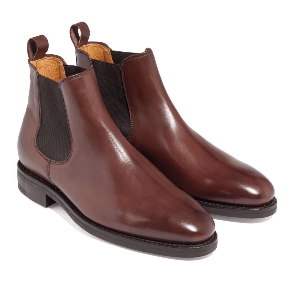 Классические мужские сапоги челси Berwick на подошве из прочной резины британской фирмы Dainite. Верх обуви выполнен из гладкой телячьей кожи коричневого цвета. Внутренняя отделка из тонкой мягкой кожи бежевого оттенка. По бокам расположены традиционные эластичные вставки, благодаря которым сапоги быстро и легко надеваются. Конструкция Goodyear Welted.