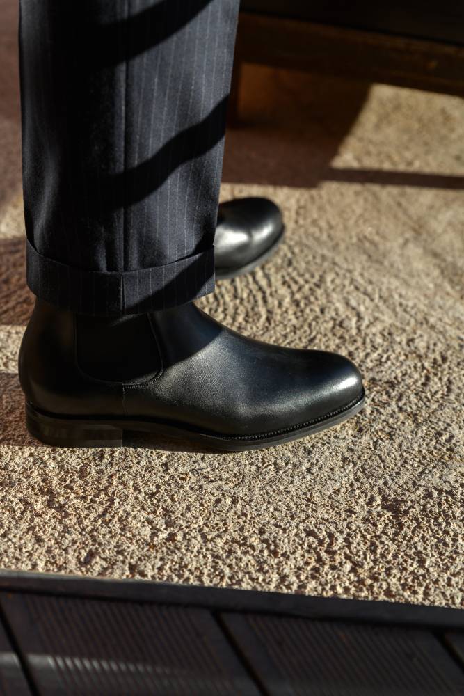 Сапоги великолепно смотрятся с деловыми костюмами и также одеждой неформального классического стиля тёмно-синих и серых оттенков. Они будут удачно сочетаться с брюками из твида и фланели, а также с джинсами из плотного денима.