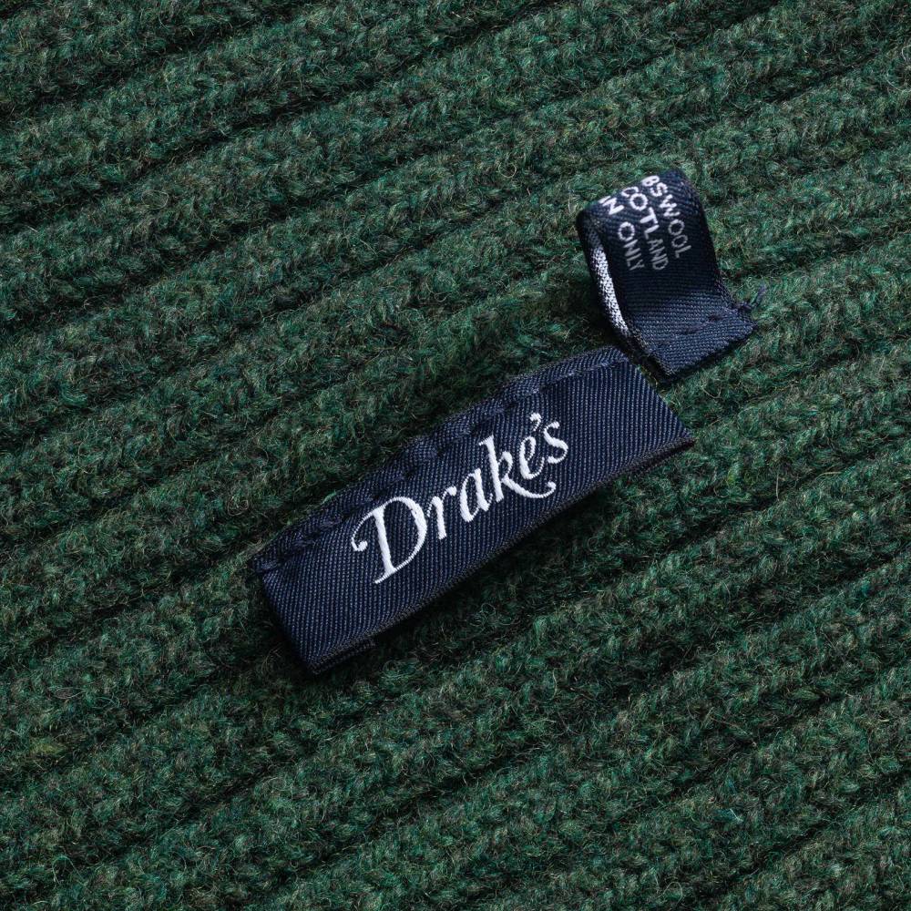 Тёплая лаконичная шапка английского бренда Drake’s благородного тёмно-зелёного цвета с высоким отворотом. Модель связана из мягкой и приятной на ощупь пряжи из шерсти ягнёнка. Простой, но в то же время стильный и универсальный мужской головой убор для холодной погоды. Подойдёт как к формальному гардеробу, так и стилю кэжуал. Сделано в Шотландии.
