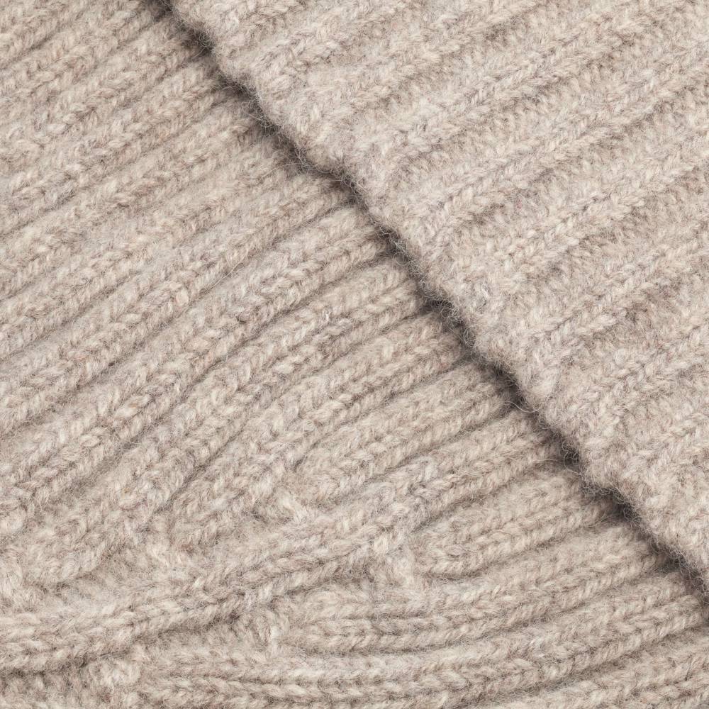 Тёплая лаконичная шапка английского бренда Drake’s благородного бежевого цвета с высоким отворотом. Модель связана из мягкой и приятной на ощупь пряжи из шерсти ягнёнка. Простой, но в то же время стильный и универсальный мужской головой убор для холодной погоды. Подойдёт как к формальному гардеробу, так и стилю кэжуал. Сделано в Шотландии.