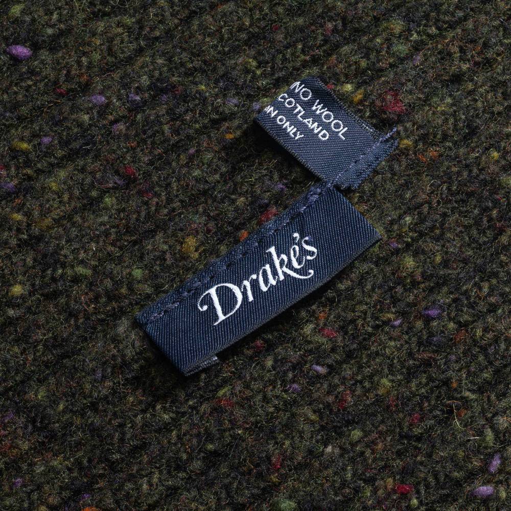 Тёплая лаконичная шапка английского бренда Drake’s тёмно-зелёного цвета с высоким отворотом. Модель связана из мягкой и приятной на ощупь донегольской пряжи (100% мериносовая шерсть), узнаваемой по характерным разноцветным вкраплениям. Простой, но в то же время стильный и универсальный мужской головой убор для холодной погоды. Подойдёт не только к формальному гардеробу, но и гардеробу в стиле кэжуал. Сделано в Шотландии.