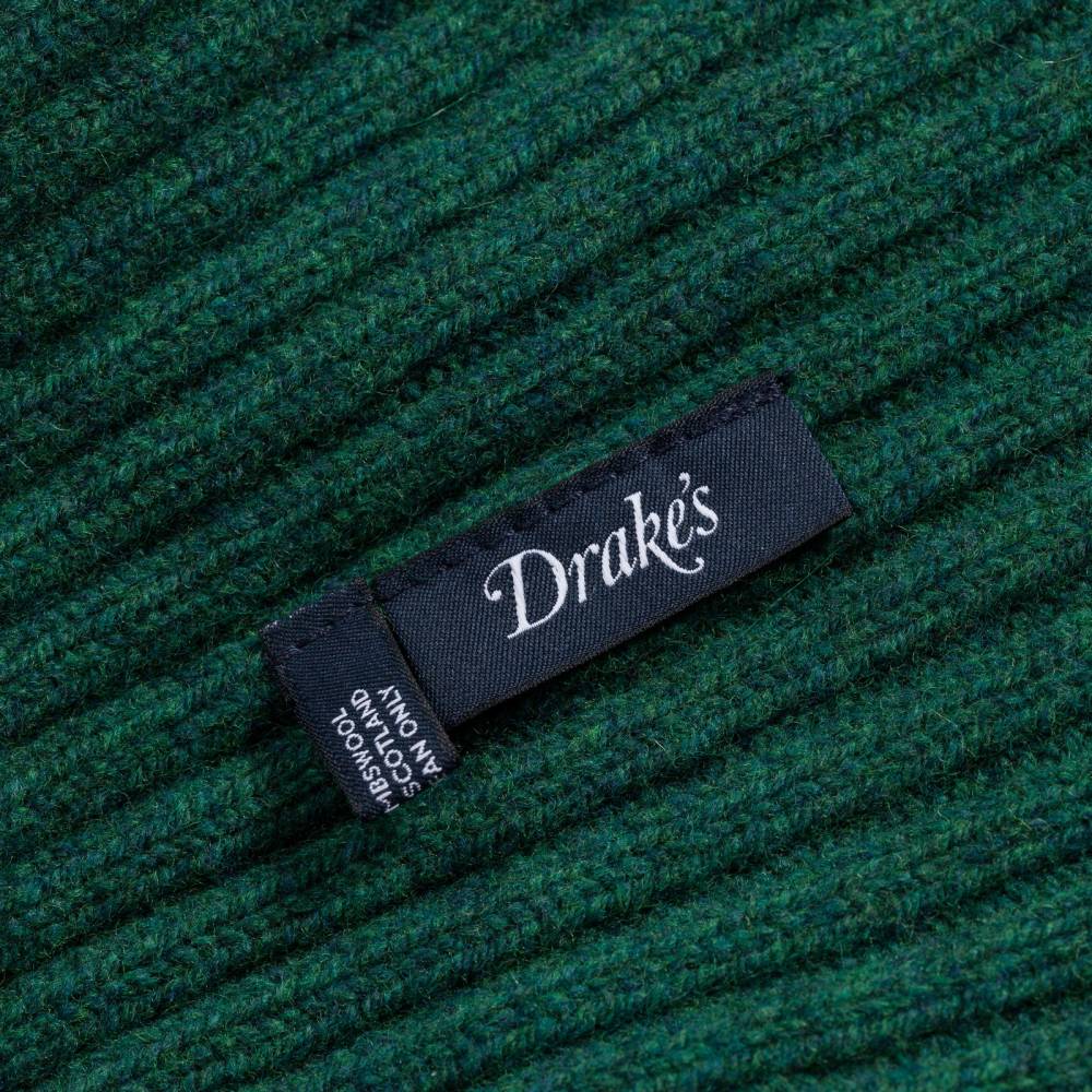 Тёплая лаконичная шапка от английского бренда Drake’s тёмно-зелёного цвета с высоким отворотом. Модель выполнена из мягкой и приятной на ощупь шерсти ягнёнка. Простой, но в то же время стильный и универсальный мужской головой убор для холодной погоды. Подойдёт как к формальному гардеробу, так и стилю кэжуал. Связана в Шотландии.