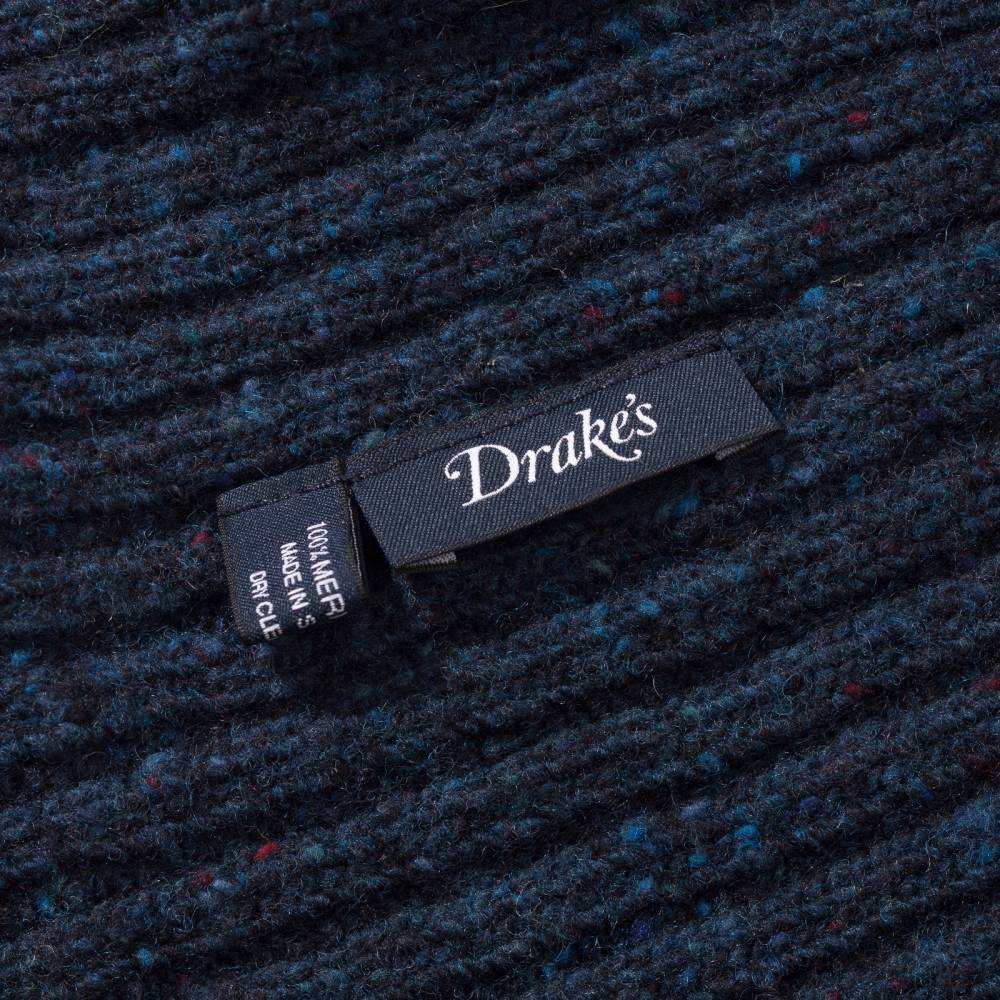 Тёплая лаконичная шапка от английского бренда Drake’s тёмно-синего цвета с высоким отворотом. Модель связана из мягкой и приятной на ощупь донегальской пряжи, узнаваемой по характерным разноцветным вкраплениям. Простой, но в то же время стильный и универсальный мужской головой убор для холодной погоды. Подойдёт как к формальному гардеробу, так и стилю кэжуал. Сделано в Шотландии.