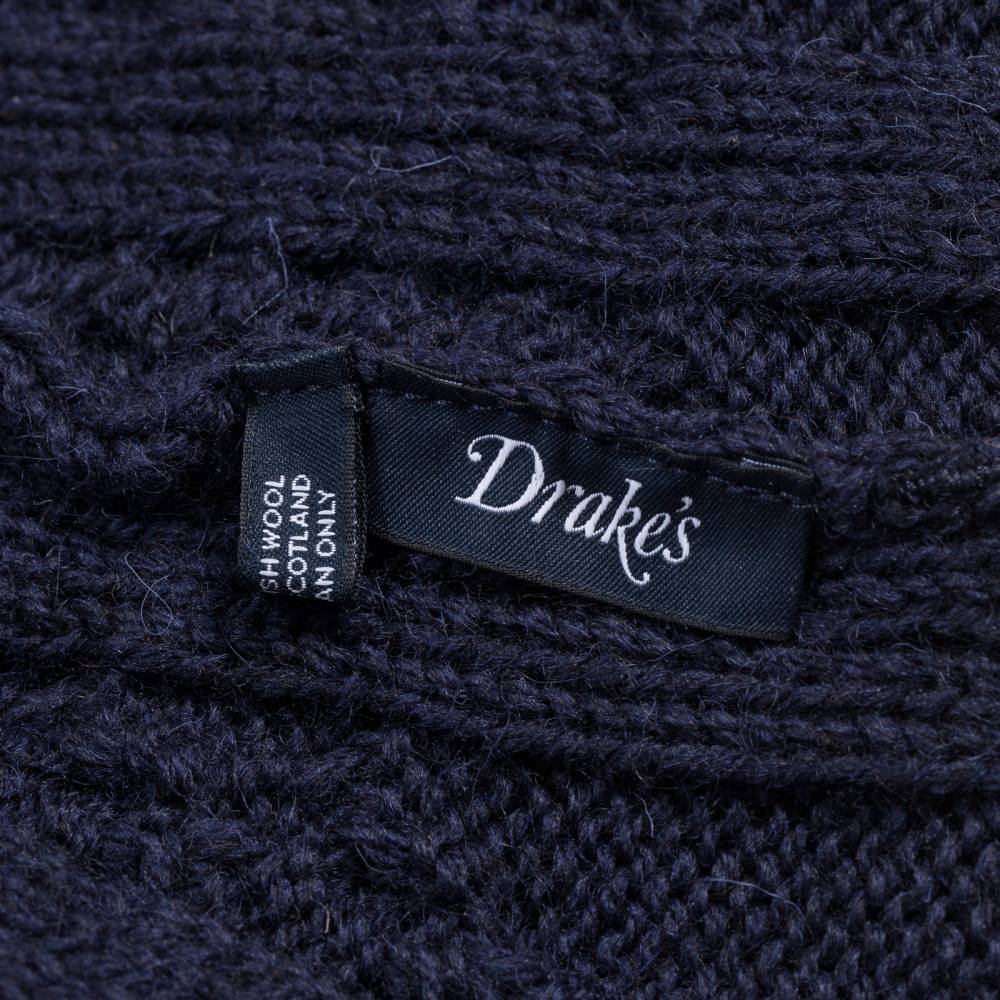 Тёплая лаконичная шапка от английского бренда Drake’s тёмно-синего цвета с высоким отворотом. Модель связана из мягкой и приятной на ощупь британской шерсти с фактурным плетением. Простой, но в то же время стильный и универсальный мужской головой убор для холодной погоды. Подойдёт как к формальному гардеробу, так и стилю кэжуал. Сделано в Шотландии.