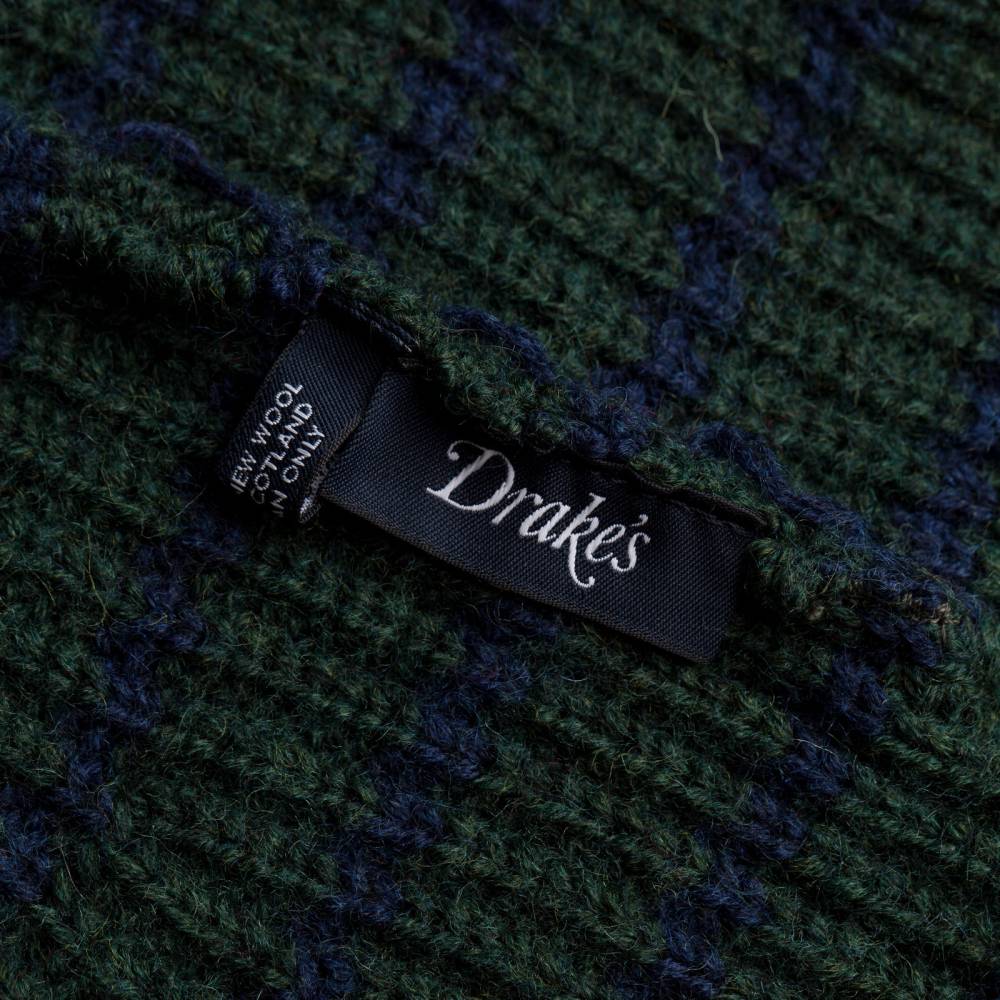 Тёплая лаконичная шапка от английского бренда Drake’s тёмно-зелёного цвета с высоким отворотом. Модель связана из мягкой и приятной на ощупь шерстяной пряжи. Простой, но в то же время стильный и универсальный мужской головой убор для холодной погоды. Подойдёт как к формальному гардеробу, так и стилю кэжуал. Сделано в Шотландии.