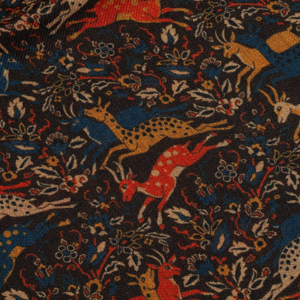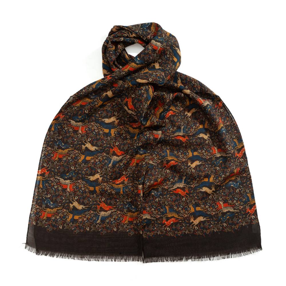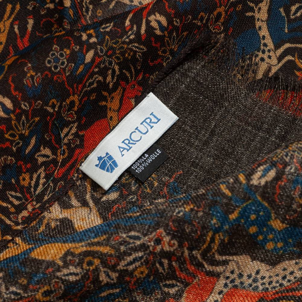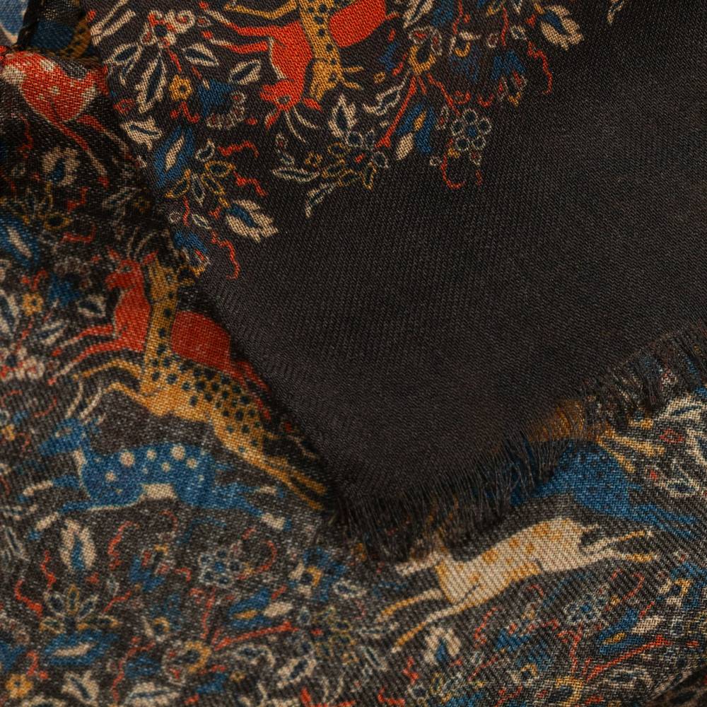 Роскошный шарф итальянского бренда Arcuri Cravatte в тёмно-синей цветовой гамме с красочными принтам. Полотно полностью выполнено из лёгкой и нежной шерсти, за счёт чего шарф изысканным образом драпируется. Края по периметру подшиты вручную. Особый шарм аксессуару придают запоминающиеся принты в виде экзотических животных и растений. Лёгкий и приятный на ощупь, этот шарф не только согреет в прохладную погоду, но и добавит элегантный акцент практически в любой не слишком формальный образ. Благодаря размеру шарф можно комфортно повязывать всевозможными узлами и складывать необходимым образом. Модель подходит как мужчинам, так и женщинам.