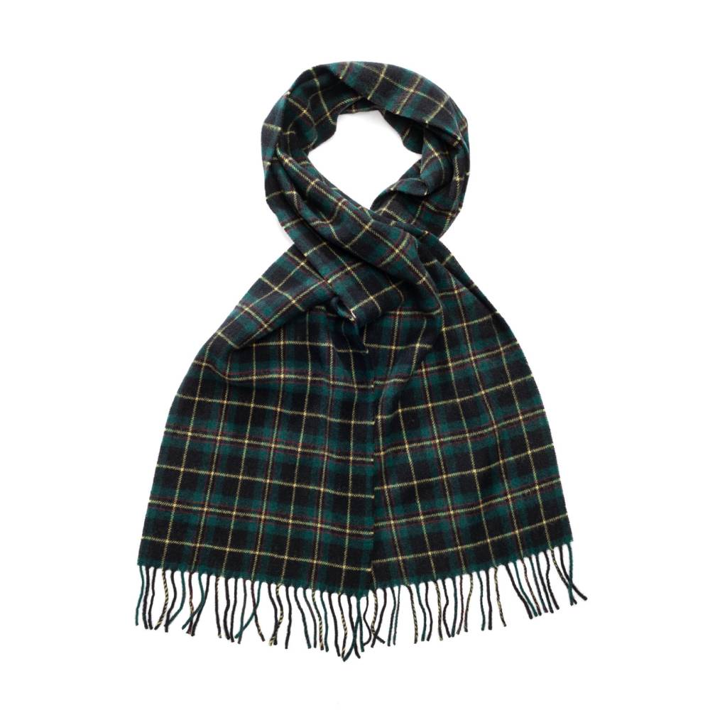 Элегантный мужской шарф в темно-зелёную клетку (рисунок вдохновлён одним из четырёх тартанов шотландского клана Кэмпбелл). Рисунок взят из собственных архивов компании Drake’s. Шарф выполнен из мягкой шотландской шерсти. Лёгкий и приятный на ощупь, этот шарф не только согреет в холодное время года, но и удачно дополнит практически любой не слишком формальный образ. Сделан в Шотландии.