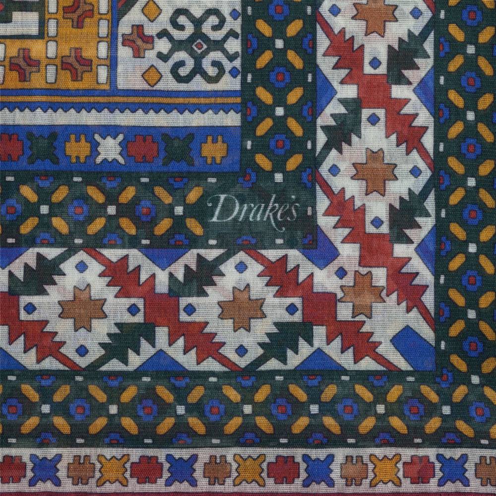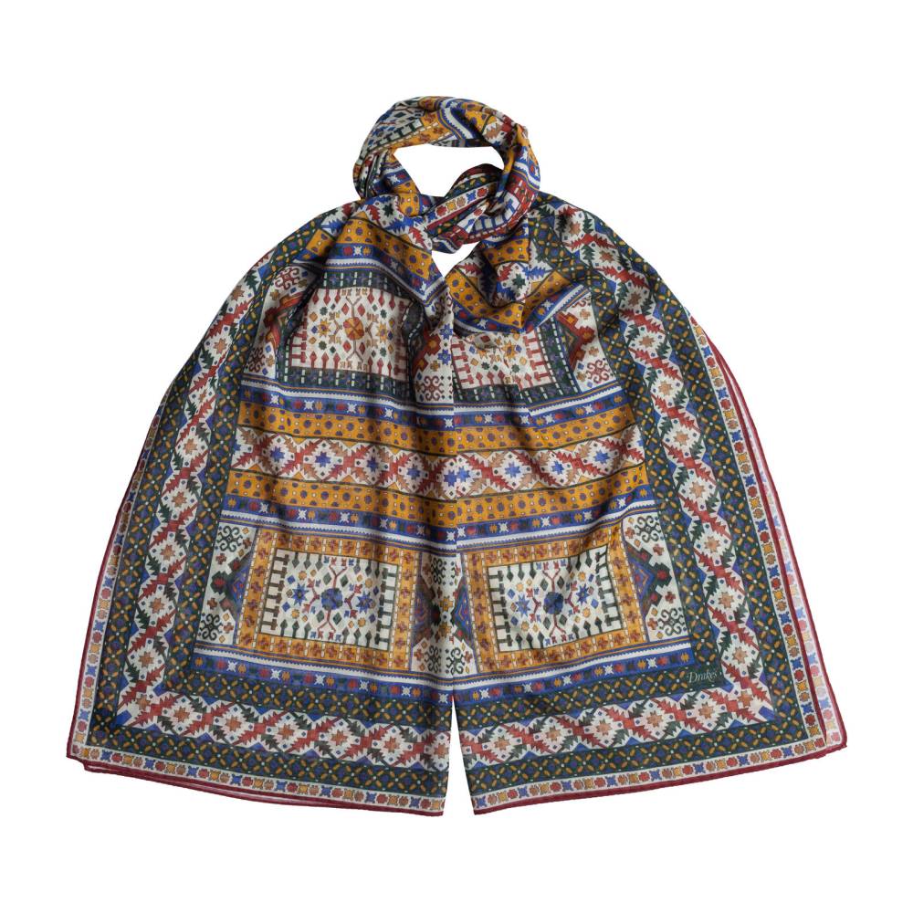 Элегантный мужской шарф в синей цветовой гамме с красочным этническим орнаментом. Лёгкий и приятный на ощупь, этот шарф не только согреет прохладным летним вечером, но и добавит элегантный акцент практически в любой не слишком формальный образ. Шарф удобно повязывать всевозможными узлами, а итальянская ткань, в состав которой входят хлопок и модал с добавлением кашемира, позволяет ему изысканным образом драпироваться. Сделан в Италии.