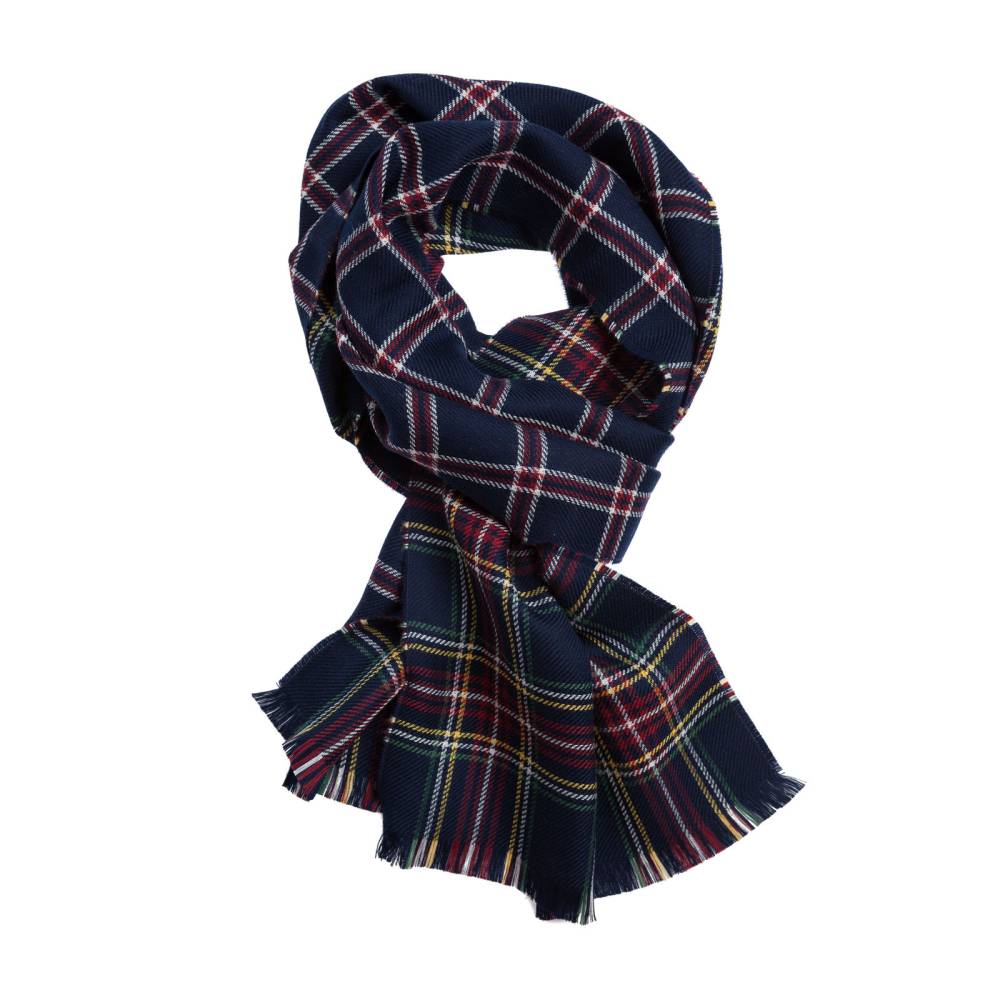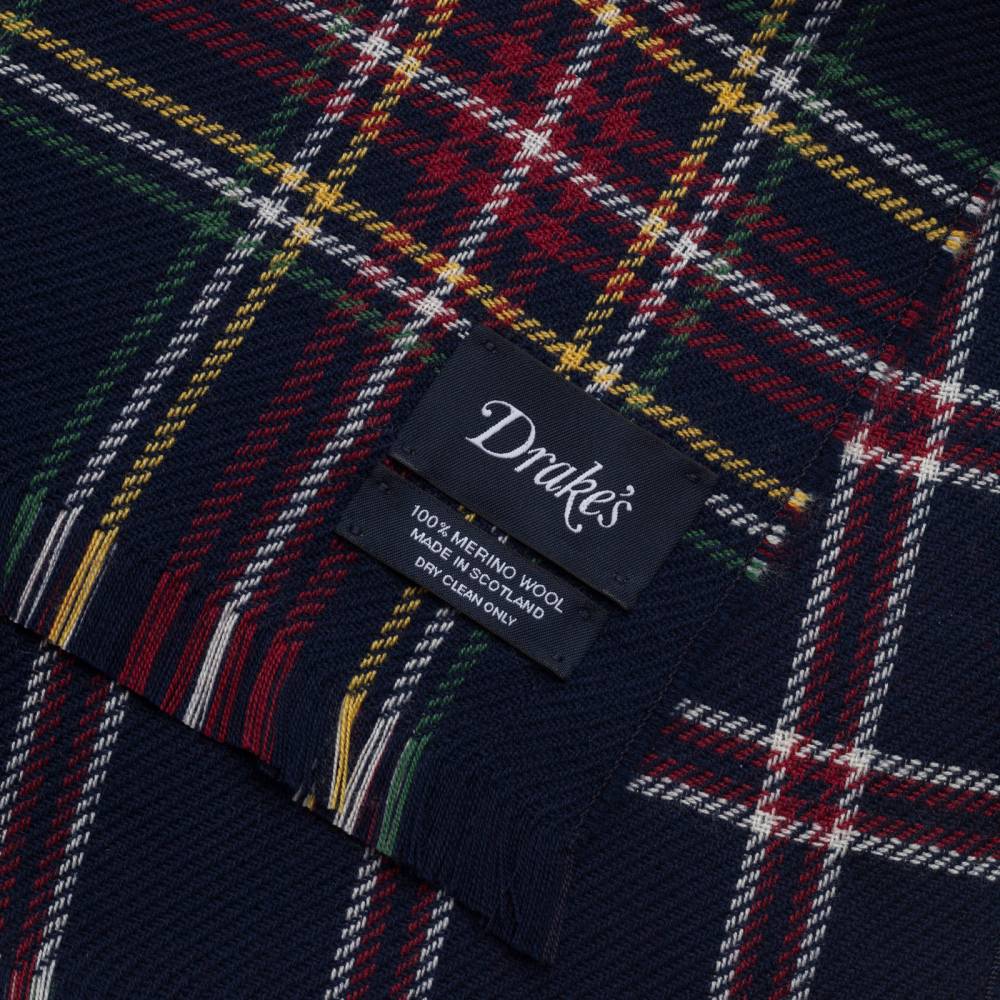 Тёплый мужской шарф английского бренда Drake’s тёмно-синего цвета с клетчатым узором. Особенностью модели являются разные с двух сторон рисунок и оттенки. Полностью выполнен из тонкой приятной на ощупь мериносовой шерсти. Несмотря на лёгкость и тонкость пряжи, шарф будет согревать в холода за счёт своего размера. Его можно повязать множеством различных способов и складывать в несколько слоёв. Простой, но в то же время стильный и универсальный мужской аксессуар для холодной погоды. Подойдёт как к формальному гардеробу, так и стилю кэжуал. Сделано в Шотландии.