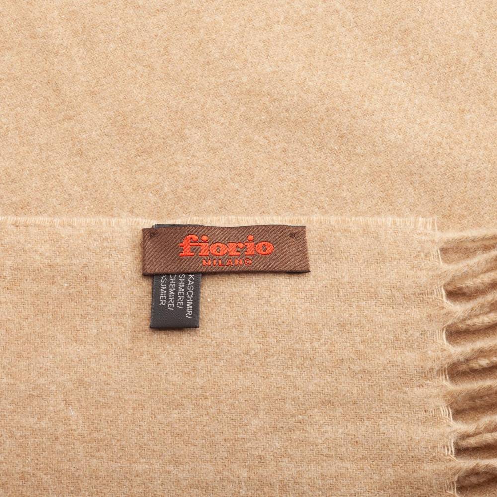Однотонный классической шарф Fiorio из нежной и тонкой кашемировой ткани бежевого цвета. Модель украшена бахромой. Несмотря не свою мягкость, шарф довольно плотный. Благодаря этому он не только согреет в холодную погоду, но и обеспечит защиту от ветра. Подходит как для мужчин, так и для женщин. К аксессуару прилагается фирменный подарочный конверт.