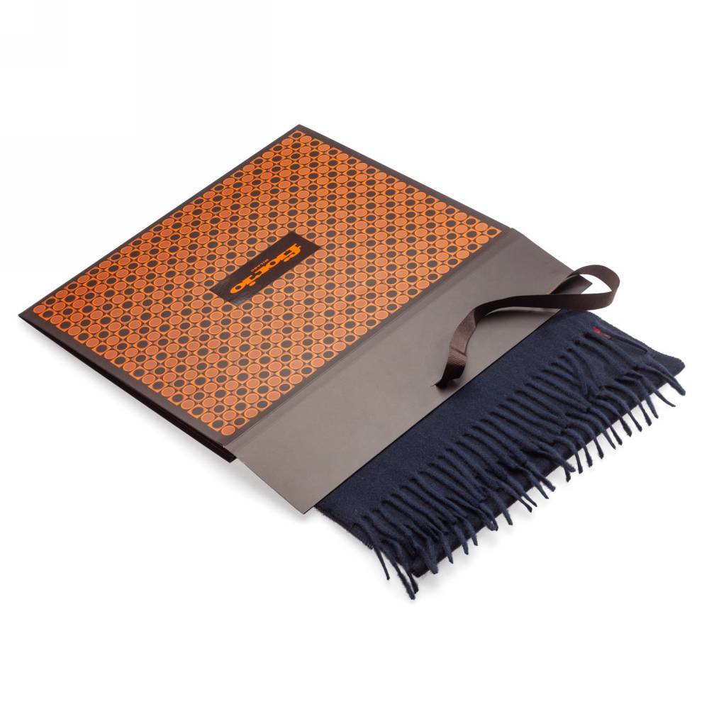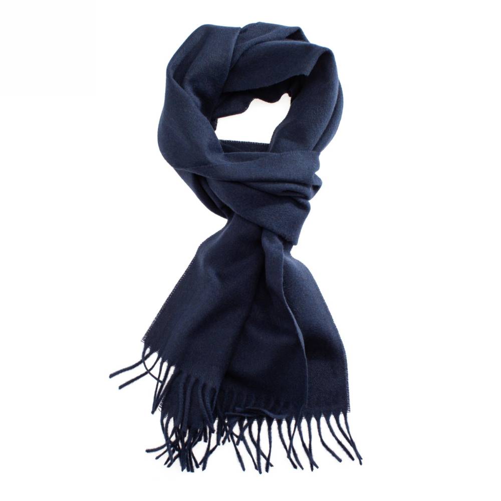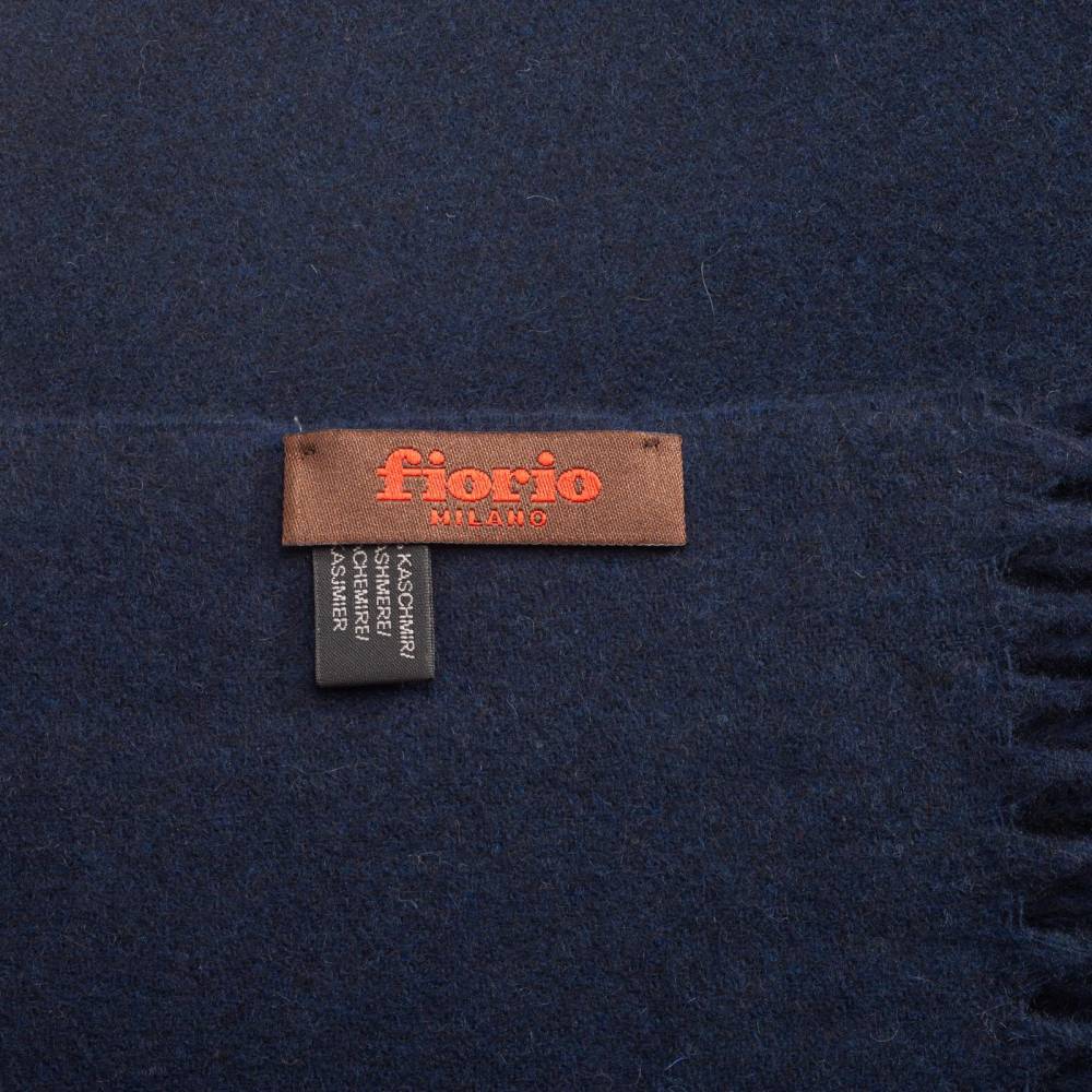 Однотонный классической шарф Fiorio из нежной и тонкой кашемировой ткани тёмно-синего цвета. Модель украшена бахромой. Несмотря не свою мягкость, шарф довольно плотный. Благодаря этому он не только согреет в холодную погоду, но и обеспечит защиту от ветра. Подходит как для мужчин, так и для женщин. К аксессуару прилагается фирменный подарочный конверт.