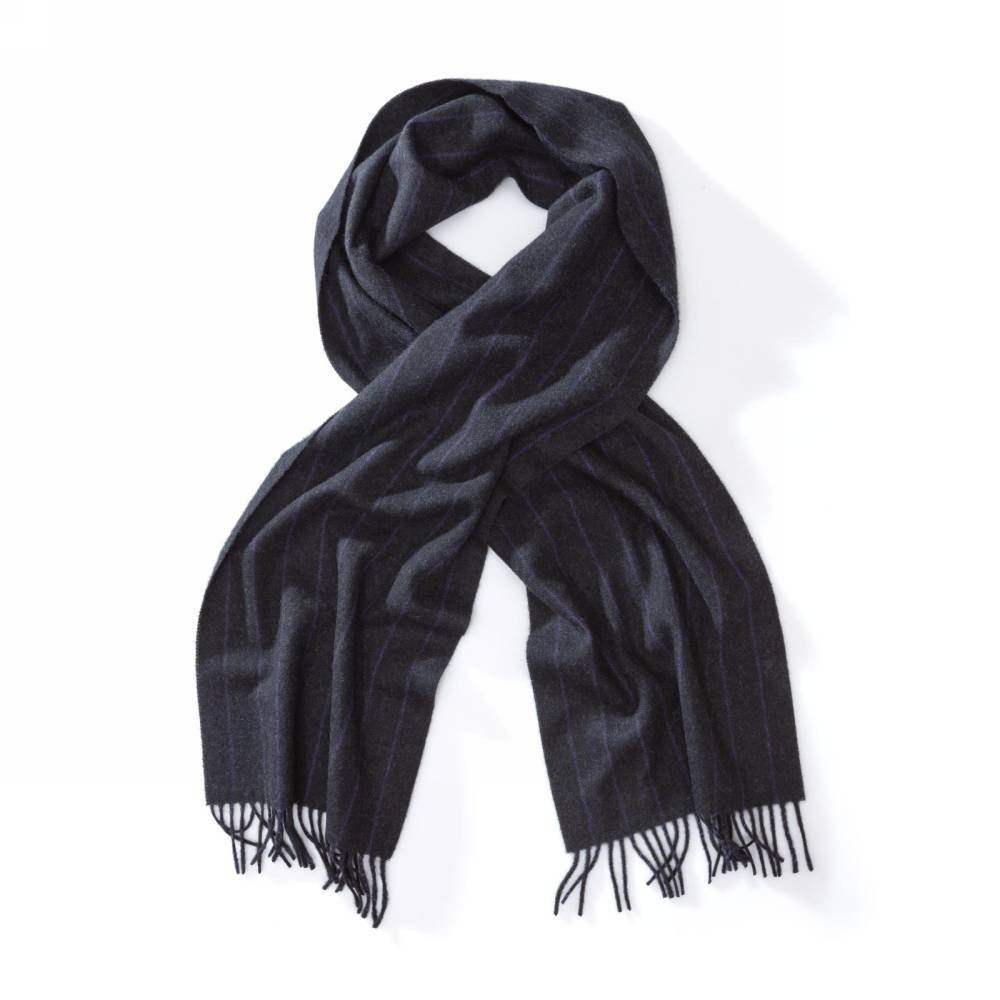 Тёплый зимний шарф Joshua Ellis полностью выполнен из лёгкого и нежного кашемира тёмно-серого цвета в светлую вертикальную полоску. Несмотря на свою лёгкость и невесомость, шарф прекрасно согревает и не пропускает холод.