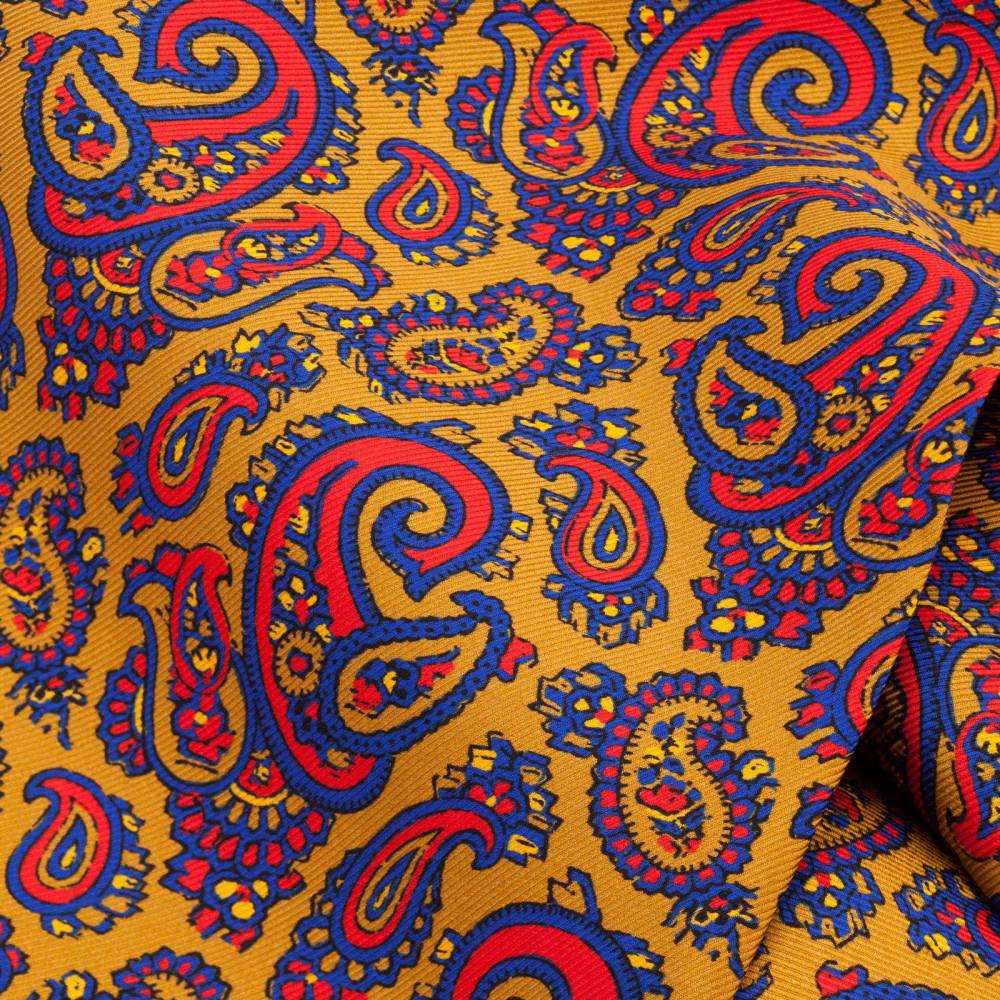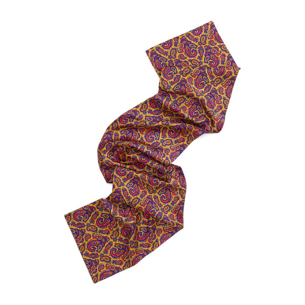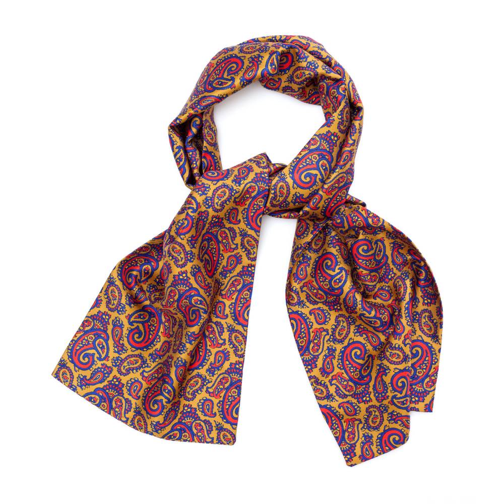 Классический шарф полностью выполнен из лёгкой приятной на ощупь шёлковой ткани с традиционным узором пейсли в яркой цветовой гамме. Аксессуар рекомендуется сочетать с пиджаками и пальто традиционного кроя. Шарф превосходно дополнит летний и весенний мужской гардероб. Небольшая фабрика семейного бренда Petronius находится в Милане. Больше 80 лет в этом ателье занимаются пошивом роскошных аксессуаров из отборных натуральных тканей. Продукция Petronius представлена в старейших бутиках и универмагах мира, среди которых Barney's и Bergdorf Goodman в Нью-Йорке.