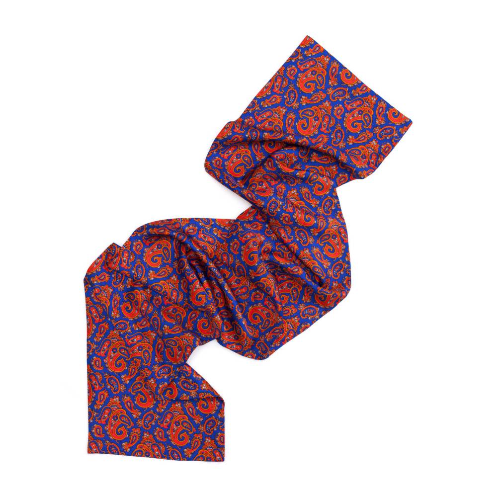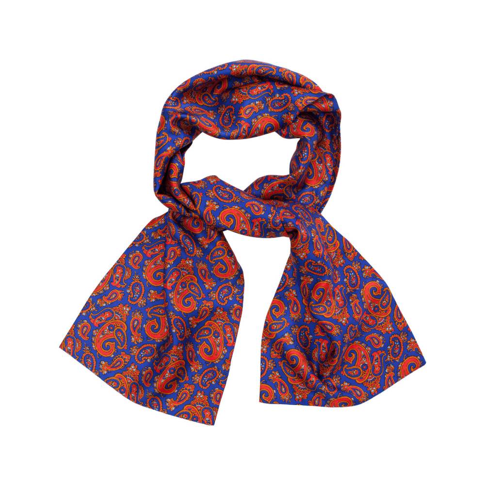 Классический шарф полностью выполнен из лёгкой приятной на ощупь шёлковой ткани с традиционным узором пейсли в яркой цветовой гамме. Аксессуар рекомендуется сочетать с пиджаками и пальто традиционного кроя. Шарф превосходно дополнит летний и весенний мужской гардероб. Небольшая фабрика семейного бренда Petronius находится в Милане. Больше 80 лет в этом ателье занимаются пошивом роскошных аксессуаров из отборных натуральных тканей. Продукция Petronius представлена в старейших бутиках и универмагах мира, среди которых Barney's и Bergdorf Goodman в Нью-Йорке.