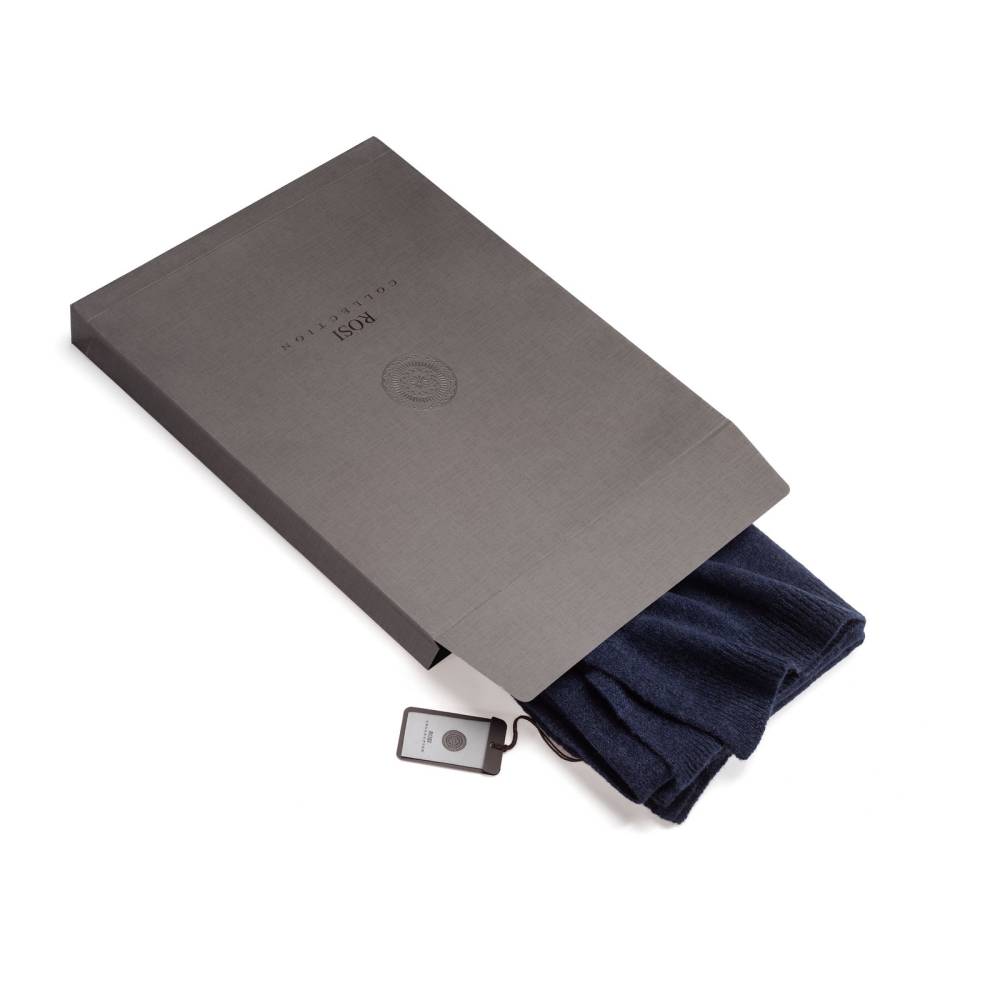 Однотонный классический шарф Rosi из нежного, приятного на ощупь кашемира тёмно-синего цвета. Модель выполнена из вязаного трикотажа высокого качества и украшена ненавязчивой ребристой фактурой по краям. Несмотря на свою мягкость шарф довольно плотный. Благодаря этому он не только согреет в холодную погоду, но и обеспечит защиту от ветра. Размер шарфа позволяет удобно повязывать его всевозможными узлами. Подходит как для мужчин, так и для женщин. К аксессуару прилагается фирменный подарочный конверт.