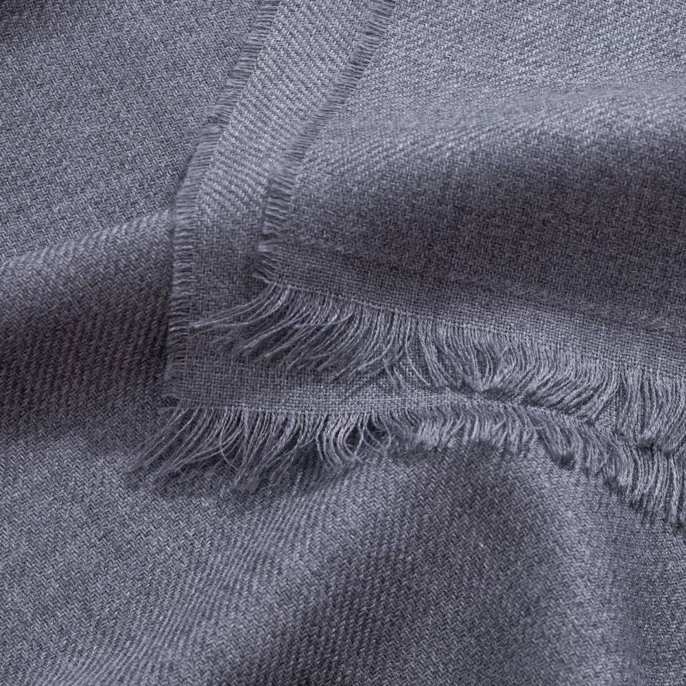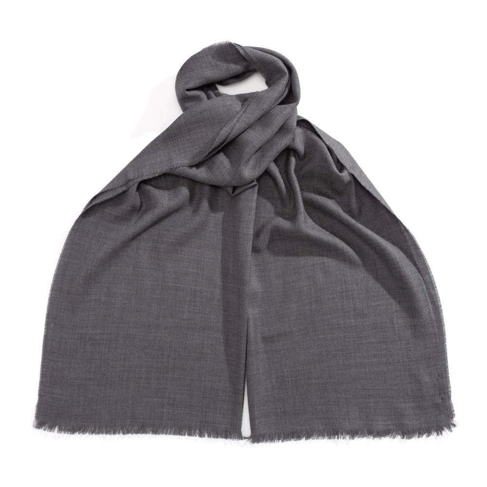 Классический шарф от итальянского бренда Rosi, сотканный из высококачественной тонкой шерстяной пряжи. Легкий и нежный, с едва заметной ребристостью. Однотонное полотно пастельного серого цвета с открытым (необработанным) краем, что придает аксессуару оригинальный и непринужденный вид. Оптимальный размер позволяет удобно повязывать его всевозможными узлами, легко адаптируя под любой стиль одежды.