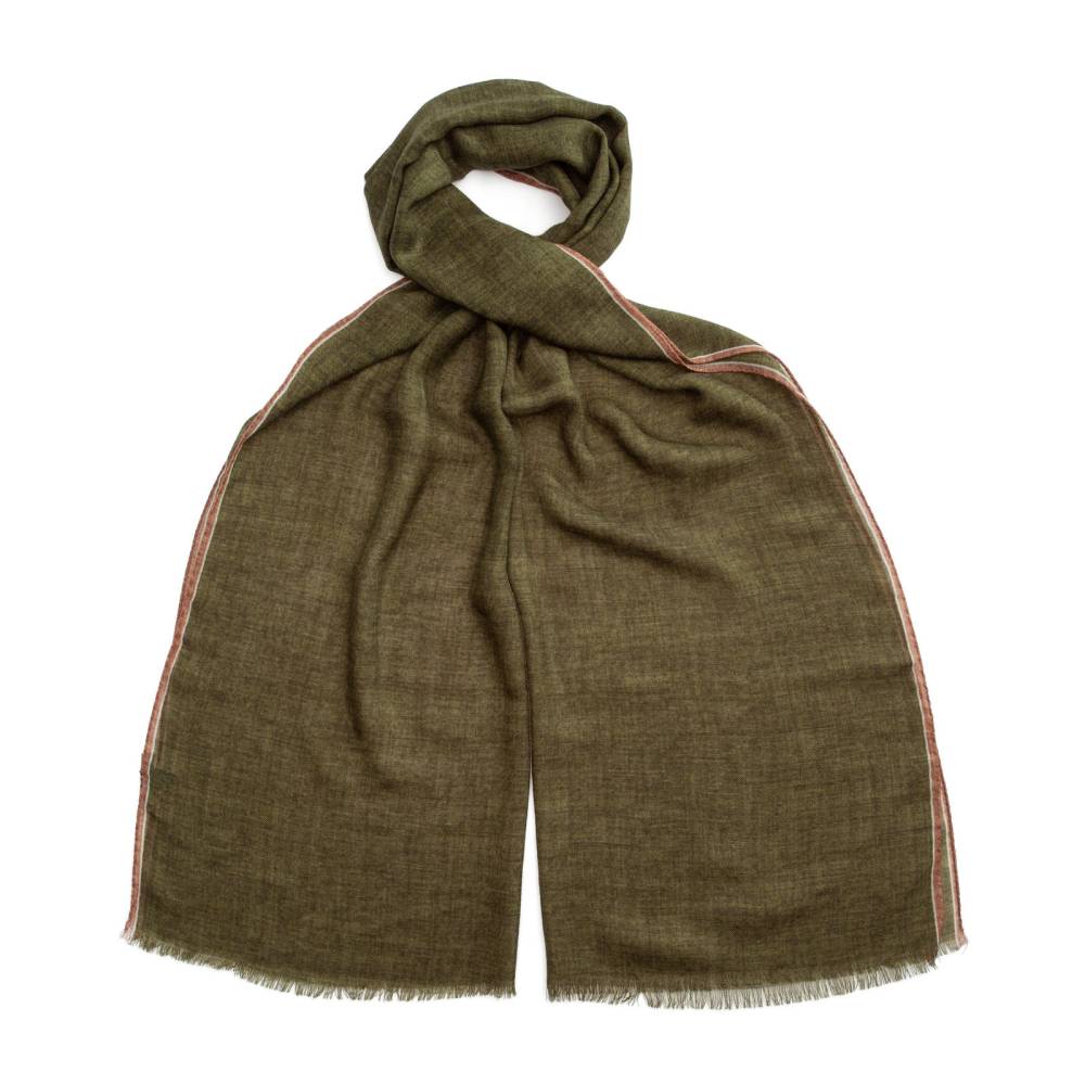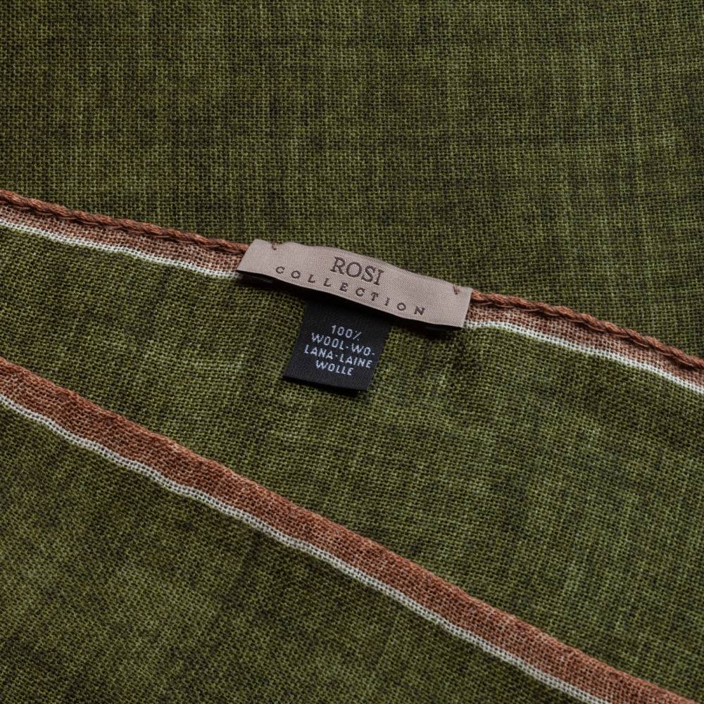 Лаконичный широкий шарф Rosi, сотканный из высококачественной шерстяной пряжи. Лёгкий и нежный, почти невесомый этот шарф подойдёт практически к любому классическому образу, добавив ненавязчивый акцент. Однотонная модель зелёного цвета с контрастной окантовкой. Размер шарфа позволяет удобно повязывать его всевозможными узлами и складывать в несколько раз. Подходит как для мужчин, так и для женщин. К аксессуару прилагается фирменный подарочный конверт.
