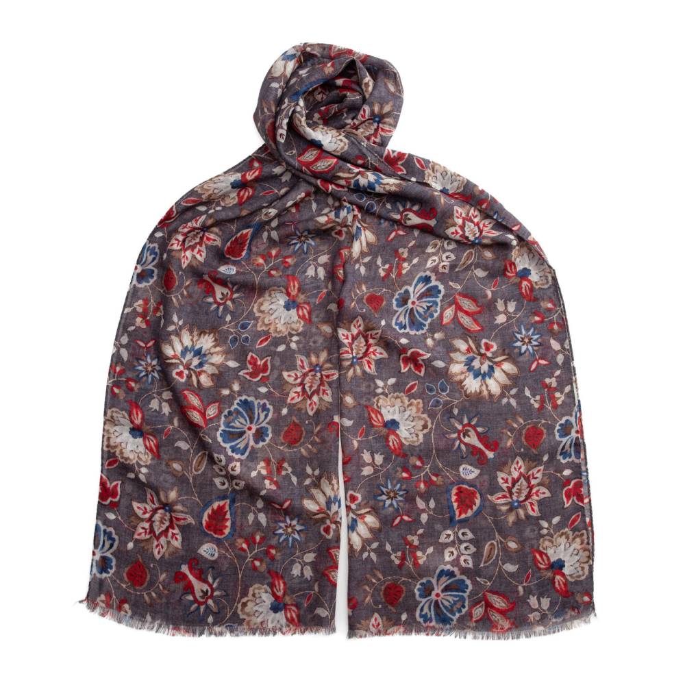 Роскошный широкий шарф Rosi, сотканный из высококачественной шерстяной пряжи. Лёгкий и нежный, почти невесомый этот шарф подойдёт практически к любому классическому образу, добавив ненавязчивый акцент и нотку романтики. Полотно модели украшено яркими флористическими узорами. Размер шарфа позволяет удобно повязывать его всевозможными узлами и складывать в несколько раз. Подходит как для мужчин, так и для женщин. К аксессуару прилагается фирменный подарочный конверт.