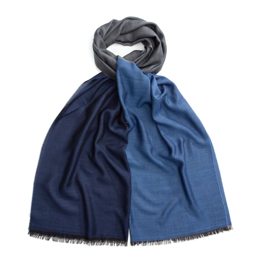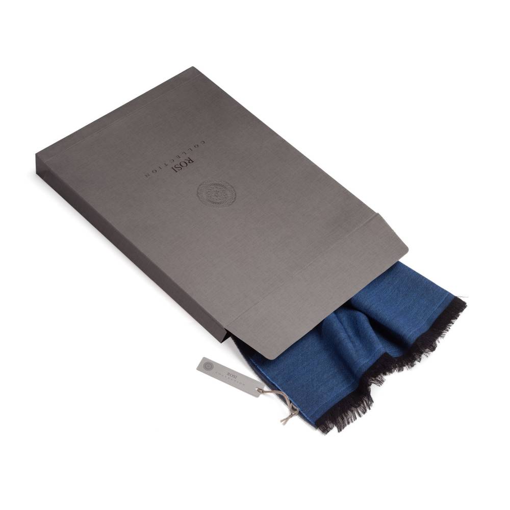 Роскошный широкий шарф Rosi соткан из высококачественной шерстяной пряжи с добавлением шёлка. Лёгкий и нежный, почти невесомый этот шарф подойдёт практически к любому классическому образу, добавив ненавязчивый акцент. Полотно выполнено в трёх цветах: сером и двух оттенках синего. Размер шарфа позволяет удобно повязывать его всевозможными узлами и складывать в несколько раз. Подходит как для мужчин, так и для женщин. К аксессуару прилагается фирменный подарочный конверт.
