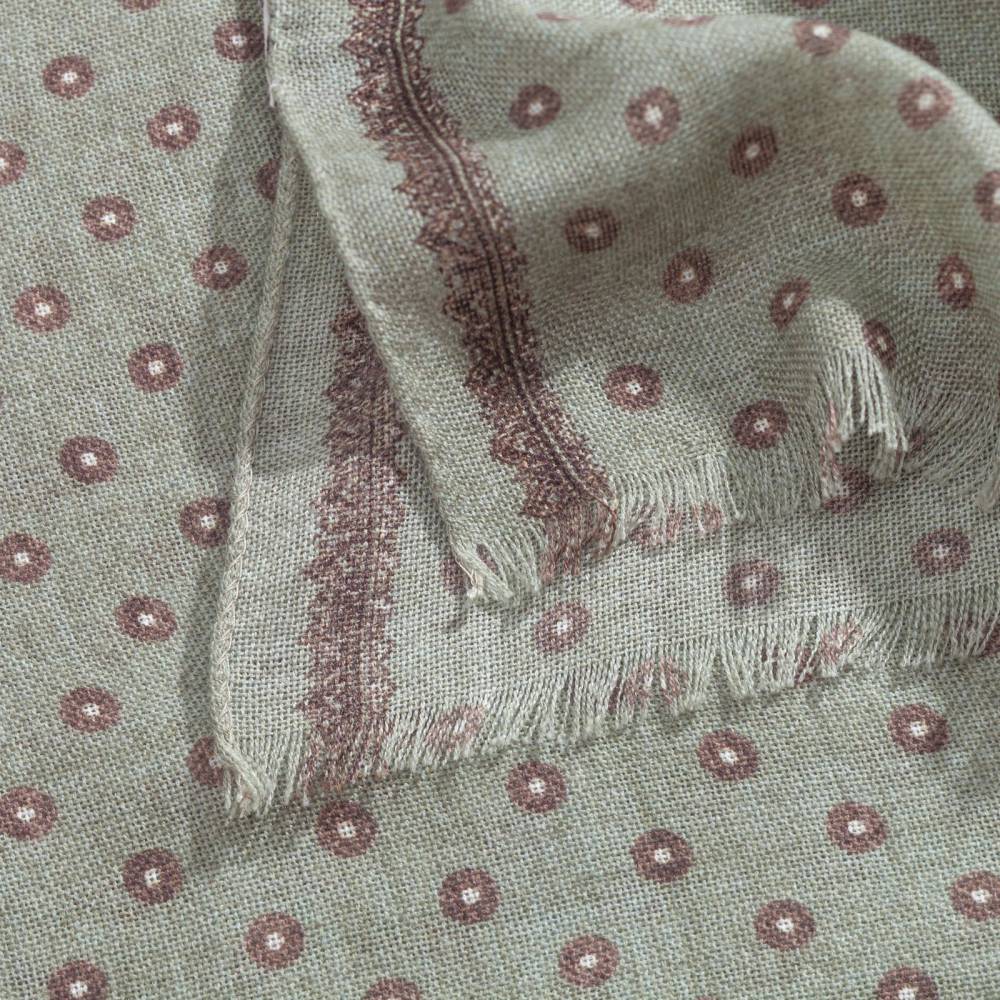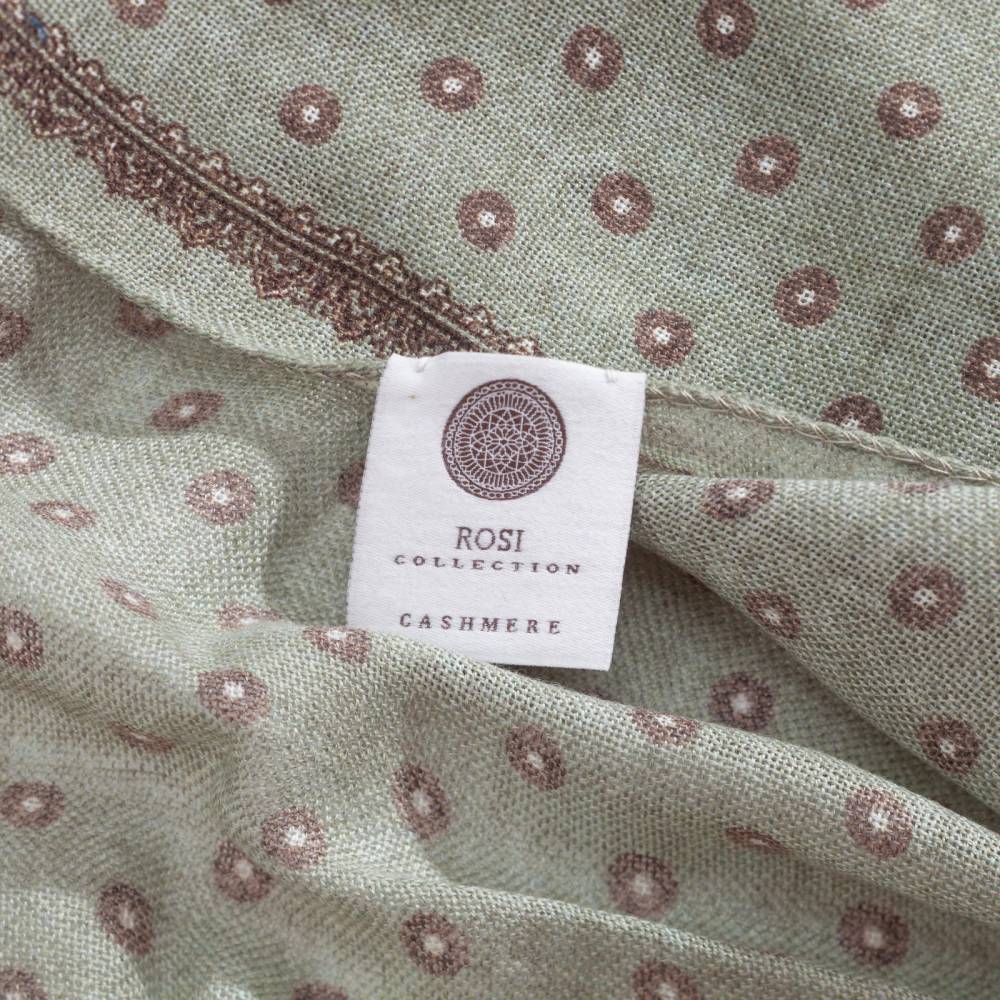 Шарф Rosi Collection, сотканный из 100% кашемира, сочетает в себе тепло, элегантность и непринужденный итальянский стиль. Нежный пастельный светло-зеленый цвет с изысканными акцентами в виде кругов и орнамента коричневых и бежевых оттенков по краю. Шарф легкий, но при этом обладает отличными теплоизолирующими свойствами, обеспечивая роскошную драпировку и изысканный внешний вид. Оптимальный размер обеспечивает роскошную драпировку и позволяет легко адаптировать шарф под любой стиль одежды. К аксессуару прилагается фирменный подарочный конверт.