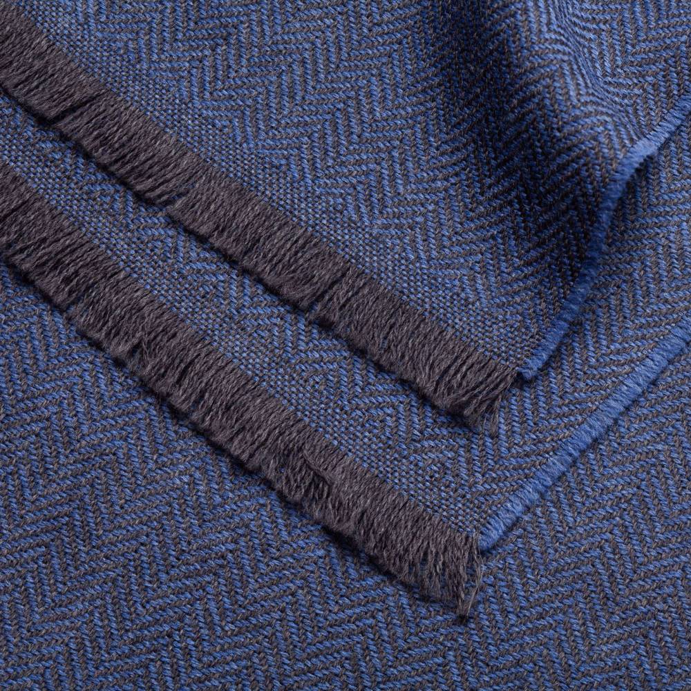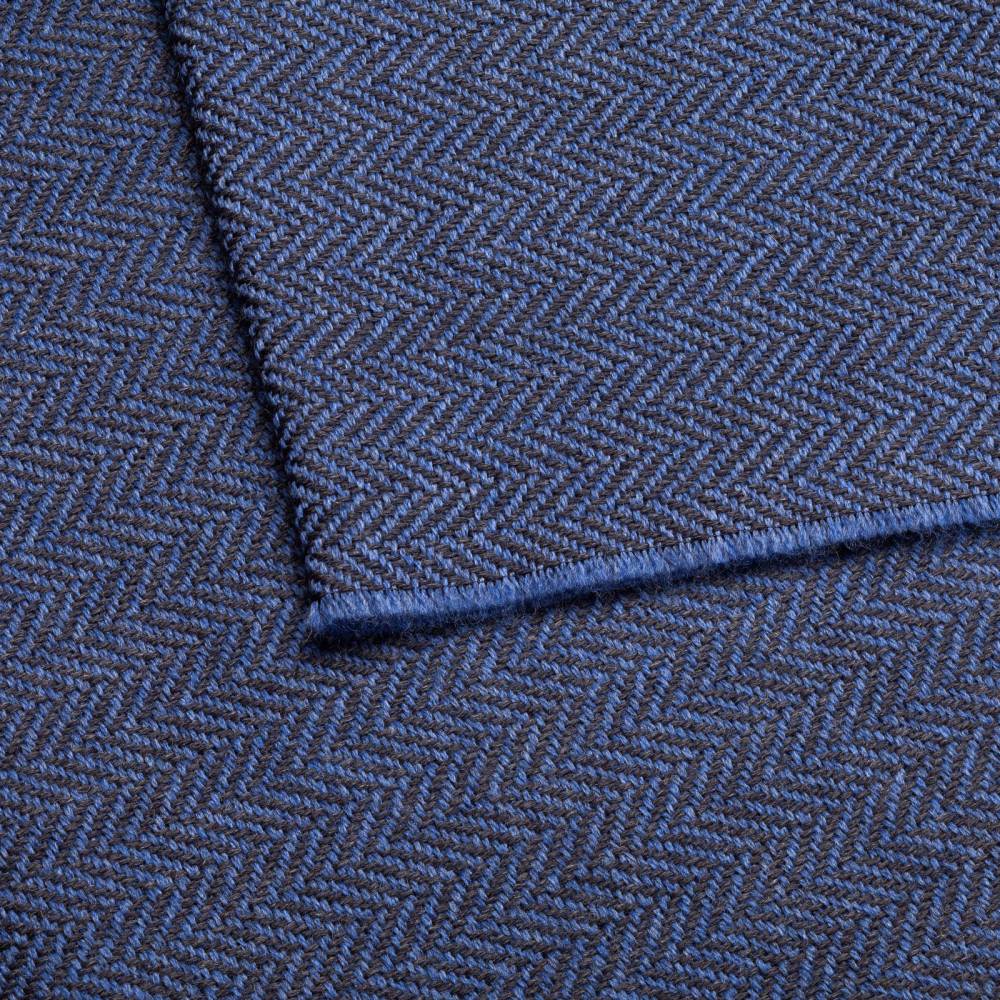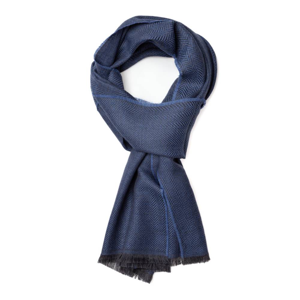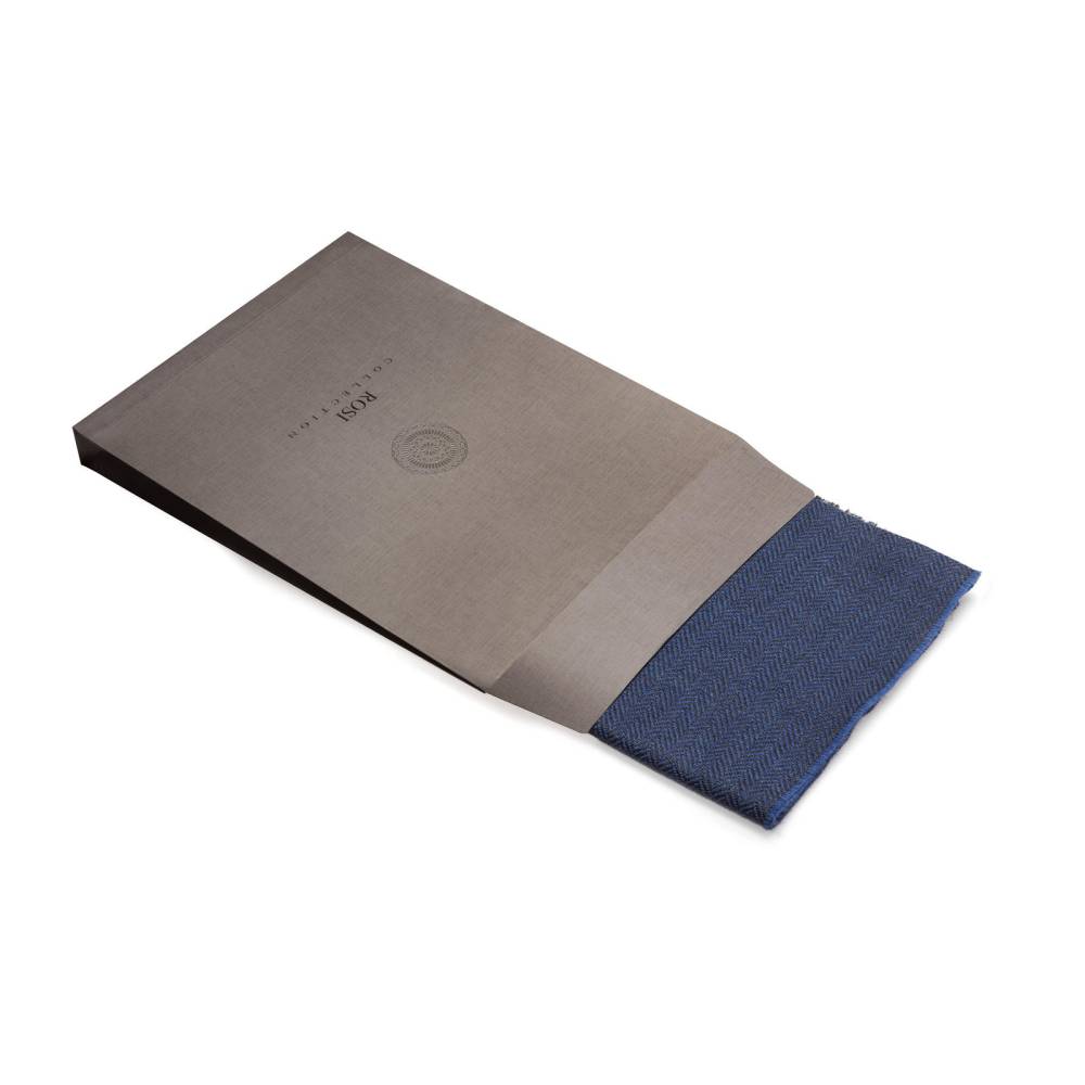 Мужской классической шарф Rosi, сотканный из высококачественной шерстяной пряжи синего цвета с фактурным узором «ёлочка». Несмотря на свою мягкость шарф довольно плотный. Благодаря этому он не только согреет в холодную погоду, но и обеспечит защиту от ветра. Размер шарфа позволяет удобно повязывать его всевозможными узлами. К аксессуару прилагается фирменный подарочный конверт.
