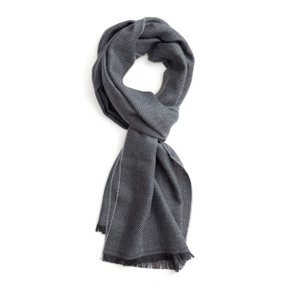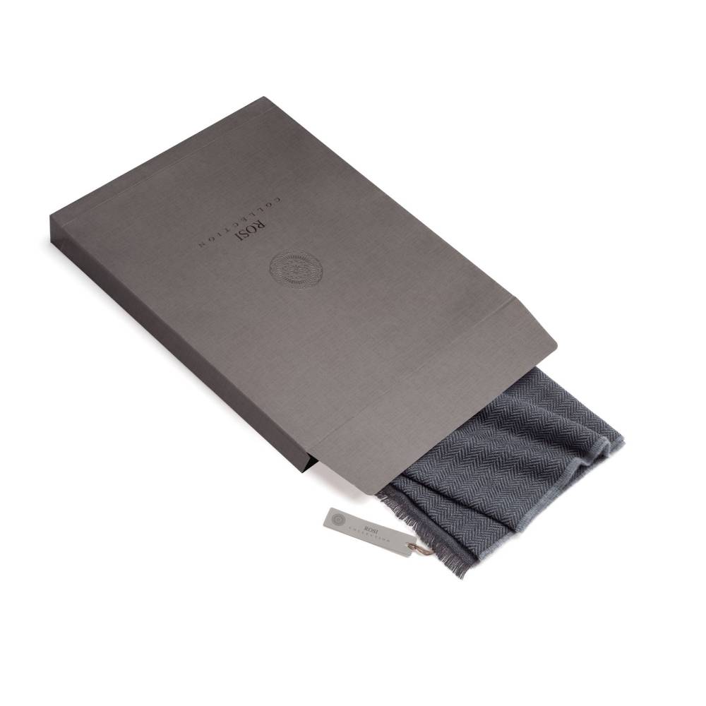 Мужской классической шарф Rosi, сотканный из высококачественной шерстяной пряжи тёмно-серого цвета с фактурным узором «ёлочка». Несмотря на свою мягкость шарф довольно плотный. Благодаря этому он не только согреет в холодную погоду, но и обеспечит защиту от ветра. Размер шарфа позволяет удобно повязывать его всевозможными узлами. К аксессуару прилагается фирменный подарочный конверт.
