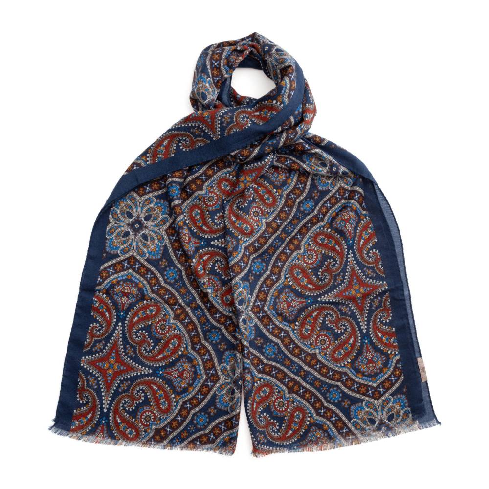 Яркий широкий шарф Rosi, сотканный из высококачественной шерстяной пряжи. Лёгкий и нежный, почти невесомый этот шарф подойдёт практически к любому классическому образу, добавив ненавязчивый акцент и нотку романтики. Полотно модели украшено узорами в виде огурцов пейсли и целым калейдоскопом других орнаментов. Размер шарфа позволяет удобно повязывать его всевозможными узлами и складывать в несколько раз. Подходит как для мужчин, так и для женщин. К аксессуару прилагается фирменный подарочный конверт.