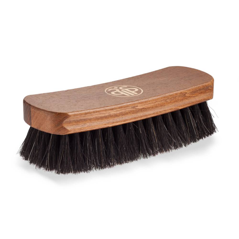 Щётка Salrus среднего размера c ворсом из натурального конского волоса чёрного цвета. Подходит для кремов на основе воска. Предназначена для полировки и распределения крема по гладкой коже. Основание выполнено из натурального дерева, выкрашено в коричневый цвет и покрыто лаком.