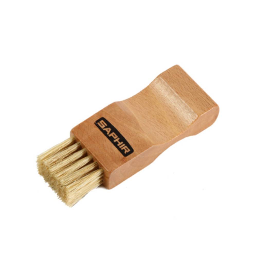 Щетка-кисть для ухода за обувью с лакированной ручкой из бука и мягкой щетиной. Благодаря своему компактному размеру и качественным материалам, она позволяет аккуратно и точно наносить крем или воск даже на труднодоступные участки, такие как швы и края.