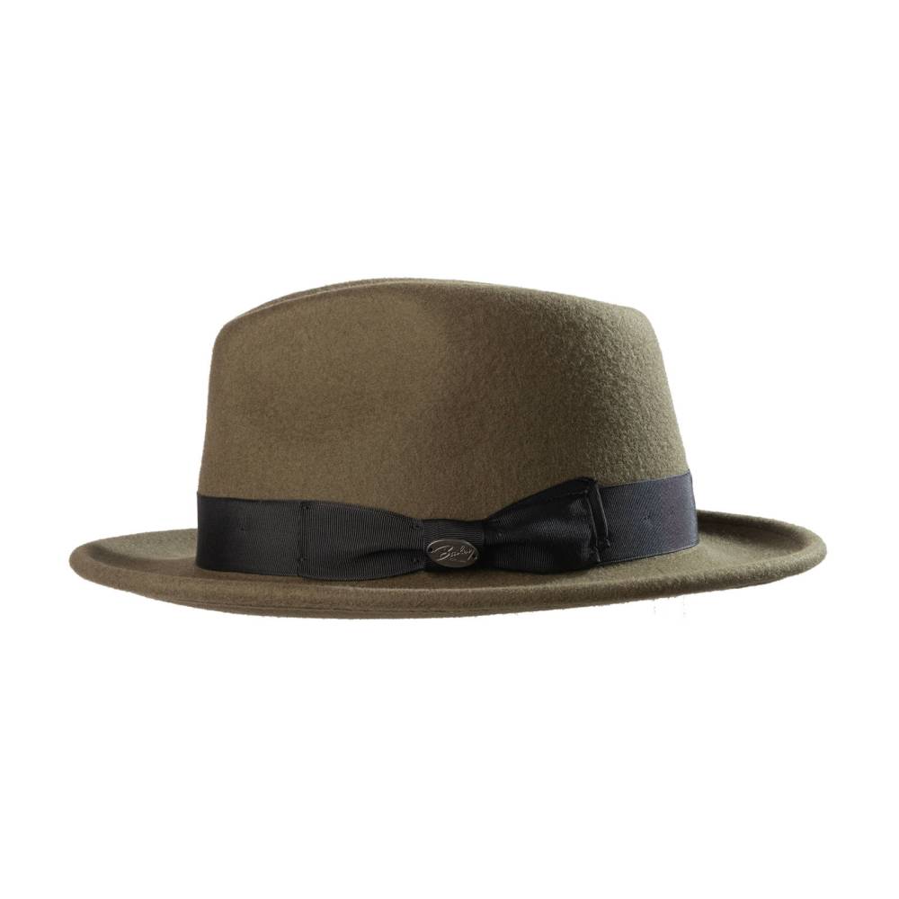 Шляпа американского бренда Bailey выполнена из фетра, обработанного по уникальной технологии LiteFelt. После нанесения специальной пропитки фетр приобретает водоотталкивающие свойства и лучше держит форму. За счёт небольших полей модель органично смотрится и подходит ко многим стилям одежды. Конструкцию шляпы можно моделировать по собственному вкусу, опуская и поднимая поля. Шляпа украшена бантом сбоку с металлическим логотипом марки.
