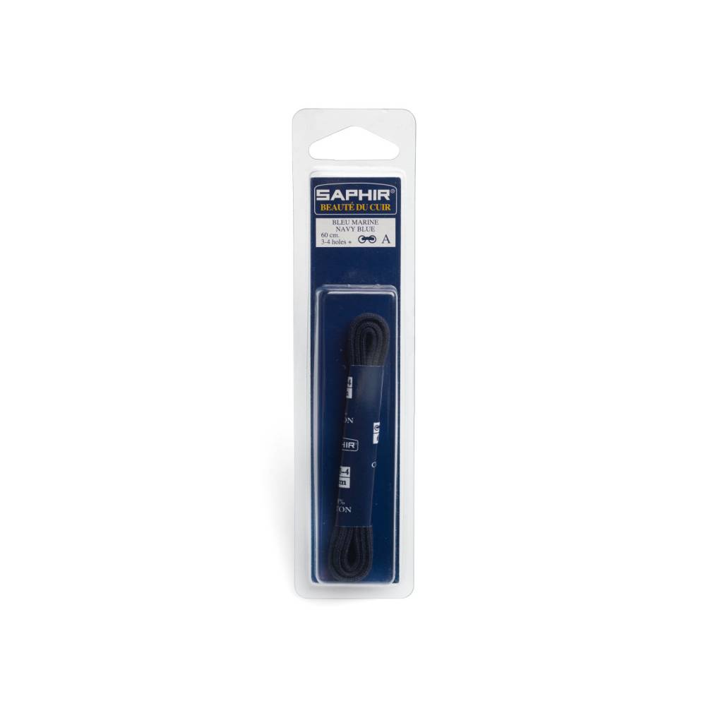 Круглые плетёные шнурки Saphir тёмно-синего цвета средней толщины. Выполнены из хлопковых нитей, пропитанных воском. Шнурки отлично подходят для классической обуви.