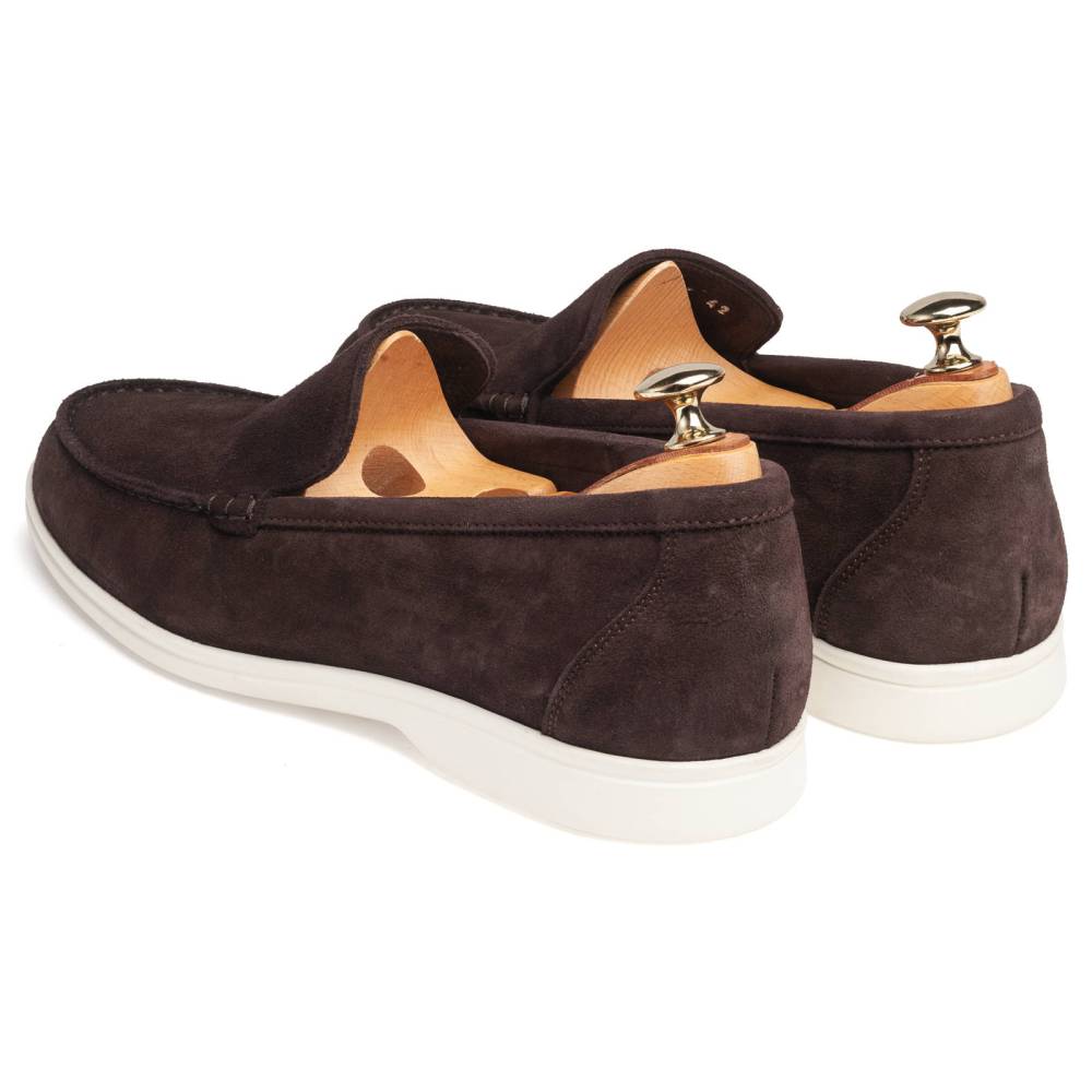 Удобные и мягкие слипоны Artisan. Верх выполнен из натуральной бархатистой замши тёмно-коричневого цвета без подкладки. Лёгкая и гибкая подошва, прошитая на 270°, изготовлена из качественной резины белого цвета. Слипоны сшиты на колодке средней полноты (F) и рассчитаны на стопу средней ширины со средним или умеренно высоким подъёмом.