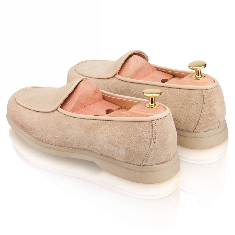 Удобные повседневные слипоны Artisan на гибкой резиновой подошве. Превосходный вариант для неформального классического гардероба в тёплую погоду. Дизайн модели напоминает элегантные бельгийские лоферы. На это указывают лаконичный вид, плавные, овальные линии мыса и аккуратная окантовка швов. Верх выполнен из приятной на ощупь замши бежевого цвета. Тонкая кожаная подкладка.